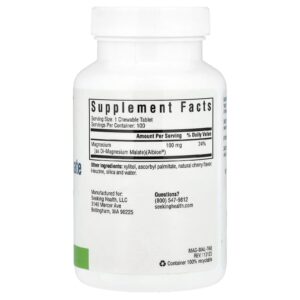 Seeking Health Malato de Magnésio Mastigável 100 mg 100 Comprimidos Mastigáveis – Seeking Health Suplementos Minerais Magnésio Malato de Magnésio.