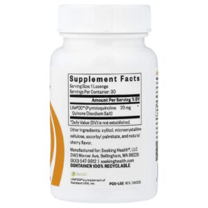 Seeking Health Pastilha PQQ 20 mg 30 Pastilhas – Seeking Health Suplementos Antioxidantes PQQ (pirroloquinolina quinona).