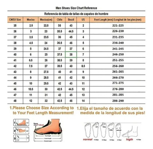 Querido comprador. Se você não sabe qual o tamanho escolher. Por favor, refere-se às seguintes dimensões que correspondem ao comprimento de seus pés.