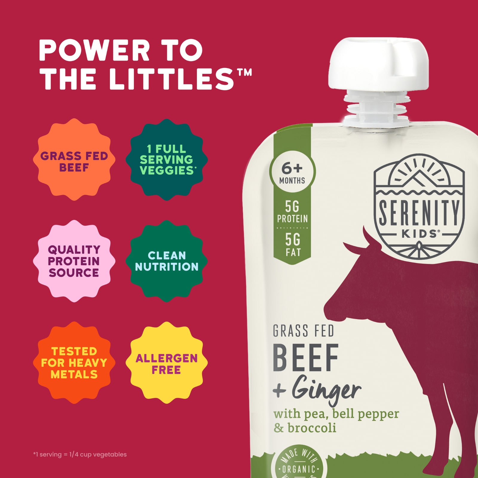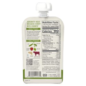 Serenity Kids Carne de Gado Criado no Pasto + Gengibre com Ervilha Pimentão e Brócolis A Partir de 6 Meses 99 g (35 oz) – Serenity Kids Bebês e Crianças Alimentação Saquinhos, Purês e Refeições.