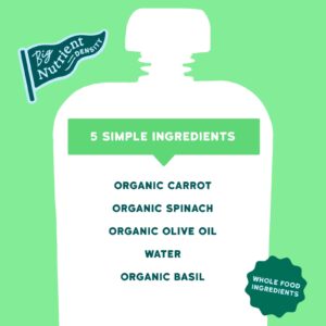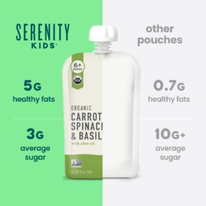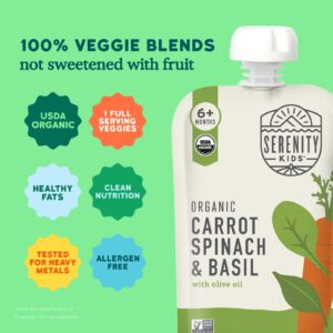 Serenity Kids Cenoura Espinafre e Manjericão Orgânicos com Óleo de Oliva Mais de 6 Meses 99 g (35 oz) – Serenity Kids Bebês e Crianças Alimentação Saquinhos, Purês e Refeições.