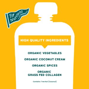 Batata-doce orgânica, creme de coco orgânico, água, espinafre orgânico, beterraba orgânica, colágeno bovino hidrolisado de gado criado no pasto, cúrcuma orgânica, gengibre orgânico, cardamomo orgânico.