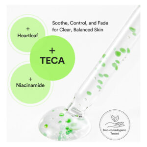 Quebre o ciclo de acne e manchas: o TECA Capsule Serum trata os problemas de pele por dentro, controlando tanto as erupções ativas quanto as marcas persistentes. Experimente uma tez mais lisa e clara de dentro para fora. – Cuidado suave para peles com tendência a acne: o TECA Capsule Serum é enriquecido com folhas de coração e Centella Asiatica para reduzir suavemente a vermelhidão e a irritação. Foi projetado para acalmar a pele sensível e propensa a manchas e promover uma tez mais saudável e equilibrada. – Niacinamida para um tom de pele uniforme: com 2% de niacinamida, este sérum atua para refinar a textura irregular e reduzir a aparência de manchas e marcas pós-acne. É um passo simples em direção a uma tez mais clara e saudável. – Cápsulas de óleo para hidratação profunda: as cápsulas de óleo deste sérum fornecem ingredientes ativos calmantes e hidratação profunda na pele. Eles fornecem hidratação duradoura enquanto acalmam e equilibram a pele, deixando-a macia, refrescada e não oleosa durante todo o dia. – Equilibra a pele oleosa: especialmente formulado para peles oleosas e com tendência a acne, este sérum ajuda a controlar o excesso de oleosidade enquanto mantém a hidratação. Não é comedogênico e deixa sua pele fresca e limpa. – Absorção rápida para uso diário: experimente uma hidratação de rápida absorção com este sérum leve que não deixa resíduos pegajosos. Proporciona uma sensação calmante e refrescante para acalmar a pele irritada. Perfeito para uso diário, ele mantém sua pele fresca, hidratada e confortável o dia todo.