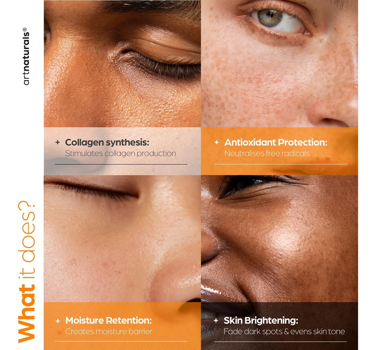 O sérum de vitamina C com ácido hialurônico ArtNaturals usa o combatente de radicais livres junto com o ácido hialurônico champ, um componente importante da pele, onde repara os danos causados pelo excesso de sol. Nosso sérum é ainda mais aprimorado com vitamina E, cujos famosos poderes antioxidantes também ajudam na reparação nutritiva da pele. A ciência demonstrou que o uso de produtos para a pele contendo vitamina E e C é mais eficaz para proteger a pele dos raios nocivos do sol do que aqueles que contêm apenas um dos dois. – PODEROSO ANTIENVELHECIMENTO: a fórmula ajuda a pele a voltar no tempo, pois a vitamina C, o ácido hialurônico e a vitamina E ajudam a diminuir as linhas de jantar, as rugas, a idade e as manchas solares! – HIDRATA, ILUMINA E SUAVIZA A PELE: com sua combinação exclusiva e de alta qualidade de ingredientes botânicos, incluindo gotu kola, óleo de jojoba e aloe vera. – Rápido: absorvente: significa que não há resíduos gordurosos, e a maquiagem pode ser aplicada logo após o uso. – Volumoso, hidratado e brilhante: como sua própria produção de colágeno é estimulada. – Gentil e puro: o sérum não irritar ou causar vermelhidão. Combate as manchas da pele com antioxidantes naturais.
