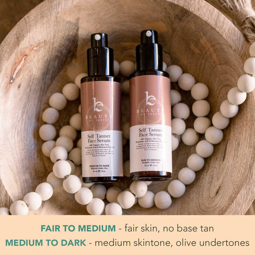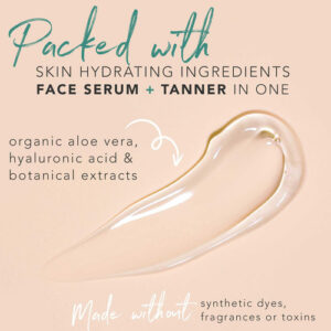 Chega de assar seu rosto ao sol. Este sérum facial autobronzeador tem todo o brilho bronzeado do bebê sem os danos do sol. Basta aplicar este sérum, seguir com seu hidratante ou óleo facial favorito e pronto para BRILHAR! Obtenha um bronzeado lindo e natural em apenas algumas horas. Nossa fórmula personalizada é preenchida com ingredientes naturais à base de plantas, como aloe vera, frutas cítricas e hortelã. Chega de produtos químicos agressivos, fumaça horrível ou tons de laranja. Esse bronzeado, feito com DHA derivado da beterraba açucareira, dá ao seu rosto uma confiança brilhante! Lembre-se: como esse sérum facial autobronzeador não contém corantes, ele permanece transparente. Novo no bronzeamento? Em vez disso, recomendamos nossa loção autobronzeadora facial. – SÉRUM ANTIENVELHECIMENTO E BRONZEADOR PARA ROSTO: formulamos um sérum facial de alta qualidade – para que você possa brilhar e obter benefícios antienvelhecimento em um único produto. Nosso bronzeador facial é formulado com ingredientes limpos e poderosos que proporcionam um bronzeado que dura dias. – SECAGEM RÁPIDA PARA QUE VOCÊ POSSA CONTINUAR COM SEUS CUIDADOS COM A PELE: leva apenas 5 a 10 minutos para secar. Não é necessário misturá-lo com qualquer outra coisa (como faria com gotas bronzeadoras), basta colocá-lo diretamente na pele limpa e depois hidratar 5 a 10 minutos depois. – AUTOBRONZEADORES: Beauty by Earth tem vários formatos de autobronzeador limpo (o mais próximo possível do autobronzeador orgânico), incluindo gotas autobronzeadoras, gotas bronzeadoras faciais, água bronzeadora, loção bronzeadora facial e muito mais. – DOIS OPÇÕES DE CORES: Nossos formatos graduais de autobronzeador vêm em 2 opções de tonalidades. Se você tem pele pálida/clara, use Fair to Medium. Se você tem uma tez verde-oliva ou bronzeada básica, use um autobronzeador médio a escuro. A cor certa garantirá que não haja cor laranja! – ADORE OU NOS AVISE: Temos certeza de que você vai adorar nosso sérum autobronzeador natural e o brilho que ele lhe dá. Como uma empresa sediada no Texas, sua satisfação é nossa garantia.