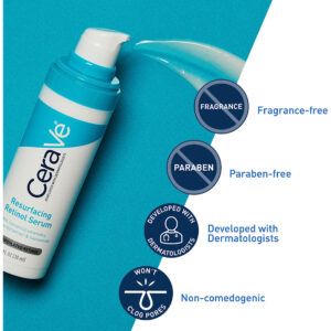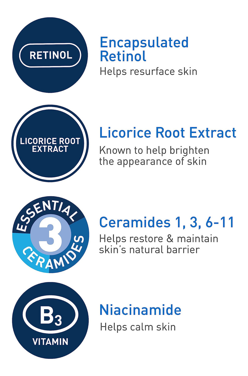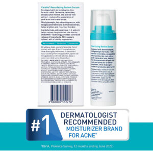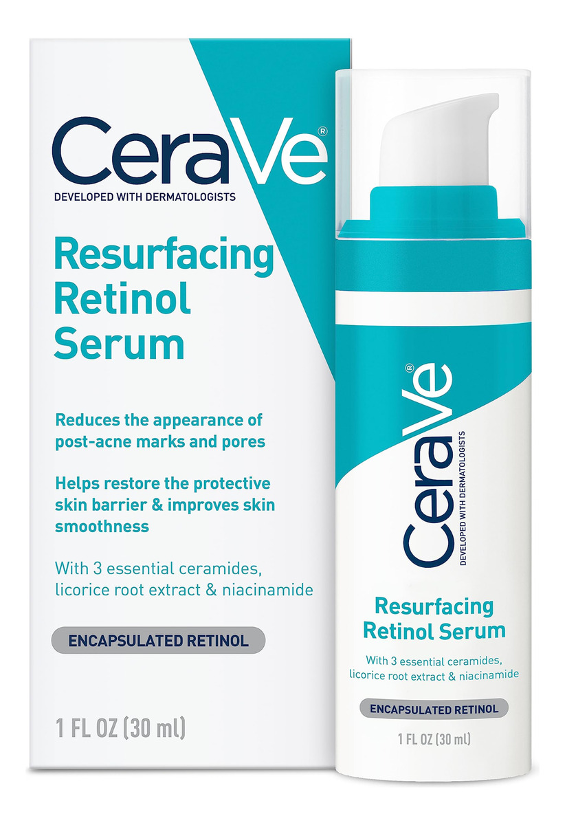 Sérum de retinol CeraVe para marcas pós-acne e textura da pele | Sérum facial que refina os poros, repavimenta e ilumina com retinol e niacinamida | Sem perfume, sem parabenos e não comedogênico | 1 onça – [SÉRUM DE RETINOL PARA ACNE PARA ROSTO] Com retinol encapsulado, este sérum ajuda a pele a ficar mais lisa e mais uniforme. O sérum facial que minimiza os poros ajuda a refinar a textura da pele ao longo do tempo e ajuda a reduzir visivelmente a aparência das marcas pós-acne. – [SÉRUM LEVE] Textura de gel e sensação não oleosa. Aplique o Resurfacing Retinol Serum à noite e aplique protetor solar. Aplique uma quantidade do tamanho de uma ervilha do sérum de retinol CeraVe em uma camada fina e deixe absorver totalmente pela pele antes de aplicar produtos adicionais. – [SORO ILUMINADOR] Formulado com extrato de raiz de alcaçuz ajuda a clarear a aparência da pele e a niacinamida ajuda a acalmar a pele. Sem fragrância, sem parabenos e não comedogênicas. – [3 CERAMIDAS ESSENCIAIS] As ceramidas são encontradas naturalmente na pele e compõem 50% dos lipídios na barreira cutânea. Todos os produtos CeraVe, formulados com três ceramidas essenciais (1, 3, 6-II) para ajudar a manter a barreira natural da pele. – [DESENVOLVIDO COM DERMATOLOGISTAS] O CeraVe Skincare é desenvolvido com dermatologistas e tem produtos adequados para pele seca, pele sensível, pele oleosa, propensa a acne e muito mais.