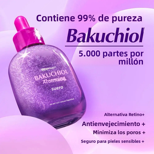Descrição Tamanho: 30 ml. Cor: roxo, amarelo Características 1. Extratos vegetais naturais, reparadores suaves, adequados para peles sensíveis, sérum firmador com bakuchiol. 2. Nutre profundamente a pele, melhora a aspereza e aumenta a elasticidade e a luminosidade. 3. Fecha eficazmente os poros, reduz as linhas de expressão e remodela os contornos faciais, deixando-a mais jovem e firme. 4. Textura leve, de rápida absorção, não oleosa, adequada para cuidado diário de manhã e à noite. 5. Fórmula científica, rica em antioxidantes, fortalece as defesas da pele e retarda envelhecimento. Notas: 1. A medição manual pode variar de 2 a 5 gramas. Por favor, entenda se há substituições. 2. Devido às diferenças entre os monitores, as imagens podem não refletir a cor real do produto. Obrigado! 3. A cor do SKU se refere à cor da embalagem do produto. A embalagem contém: 1 * Bakuchiol Volumizing Serum.