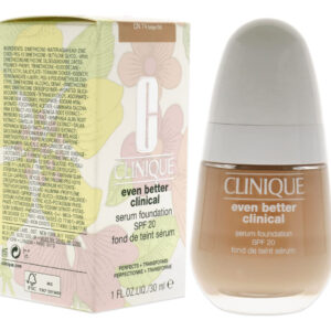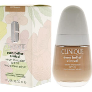 Clinique Even Better Clinical Serum Foundation SPF 20 – CN 74 Beige Foundation Women de 1 onça – Melhora visivelmente a textura da pele – Reduz a aparência dos poros – Minimiza a aparência de vermelhidão. – Cobertura total e edificável – Resistente ao suor e à umidade.
