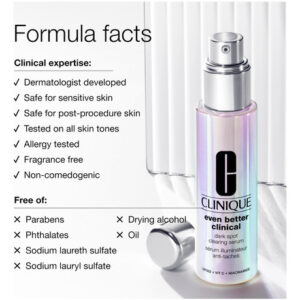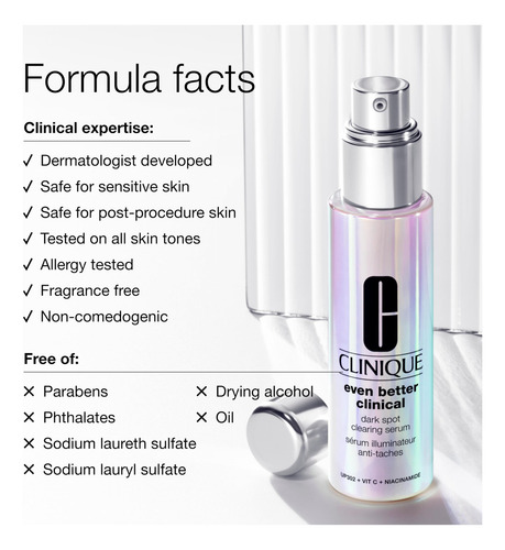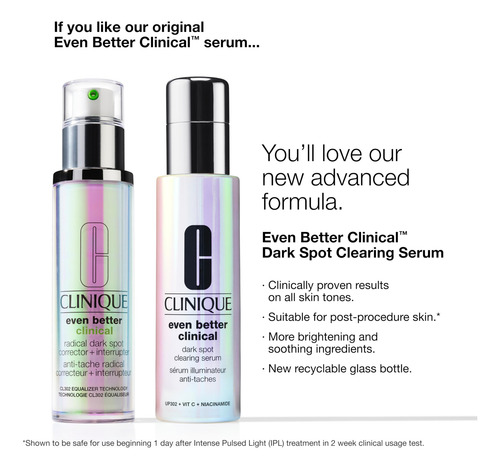 profundos.** **Testes clínicos em 34 mulheres após 8 semanas. – * 100% mostram uma redução visível na intensidade das marcas pós-manchas em tons de pele mais profundos.** ** Testes clínicos em 34 mulheres após 8 semanas. 8 semanas. – Experiência clínica. * Desenvolvido por um dermatologista. * Testado por dermatologistas. * Seguro para peles sensíveis