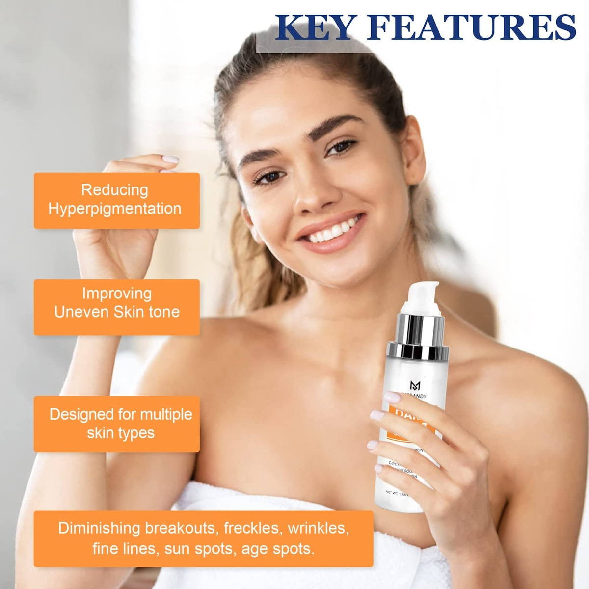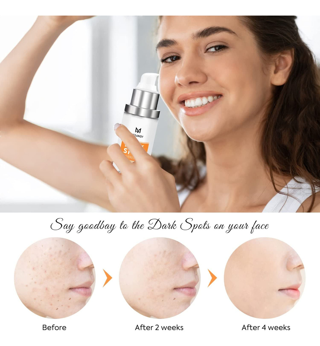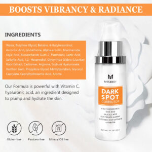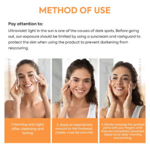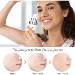 Eficaz: o corretor de manchas escuras Mesandy para soro facial penetra profundamente na pele para diminuir as manchas solares e as sardas. Melhora o tom irregular da pele com -arbutina, extrato de raiz de glicirrhiza glabra (alcaçuz) e glutationa de forma equilibrada. – Sérum facial direcionado para problemas de manchas: nosso removedor de manchas escuras para soro facial é um regime específico para problemas de manchas faciais, incluindo, mas não limitado a, manchas solares, sardas faciais, melasma e manchas marrons. Feito com os principais ingredientes positivos anti-manchas 4-butilresorcinol, ácido kójico, ácido lático e ácido salicílico, que restauram a tez da pele bloqueando a tirosinase para atenuar as manchas escuras. – Eficaz: o corretor de manchas escuras Mesandy para soro facial penetra profundamente na pele para diminuir manchas solares e sardas. Melhora o tom irregular da pele com -arbutina, extrato de raiz de glicirriza-glabra (alcaçuz) e glutationa de forma equilibrada. – Desenvolvido para vários tipos e tons de pele: o sérum removedor de manchas escuras MESANDY funciona maravilhosamente para homens e mulheres de todos os tipos de pele. Incluindo pele normal, pele neutra, oleosa, seca, mista e sensível. – Absorção superior: este corretor de manchas escuras para o corpo é à base de óleo e ajuda na superabsorção. A permeabilidade ao óleo desse removedor de manchas escuras para rosto é mais forte do que à base de água, e esse corretor de manchas escuras para rosto não é fácil de volatilizar. – Para uso diurno e noturno: para pele normal: (1) Depois de limpar o rosto pela manhã, pegue a quantidade apropriada desse removedor de manchas escuras como soro facial e espalhe nas manchas espalhadas. Depois, faça a manutenção de rotina, seguindo a sequência “Toning-Lotion-Essence-Cream-Sunscreen”; (2) Durante a noite, faça o mesmo. Depois, faça a manutenção básica. Para pele sensível: use este removedor de manchas escuras somente à noite.