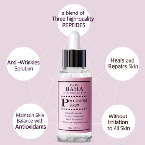 Tripeptídeo de palmitoílo-1 Palmitoíl Tetrapeptídeo-7 Acetil Hexapeptídeo-8 24 horas de envelhecimento em baixa temperatura Coelhinho saltitante; Sérum peptídico Cos De BAHA M.A. O soro peptídeo Cos De BAHA M.A contém Matrxiyl 3000 (tripeptídeo de palmitoil -1, palmitoil tetrapeptídeo 7), Argirelina (Acetil hexapeptídeo-8), niacinamida 2% e ácido hialurônico como ingredientes ativos. A Cos De BAHA produz os produtos cosméticos em instalações certificadas pela KFDA da Coreia. Os produtos Cos De BAHA são criados a partir de ingredientes eficazes, formulados de acordo com pesquisas científicas que determinam a mistura precisa dos ingredientes científicos mais eficazes. Sempre tentaremos fabricar produtos que sejam seguros e eficazes para a pele. – Tripeptídeo de palmitoílo-1 – Palmitoil tetrapeptídeo-7 – Acetil hexapeptídeo-8 – 24 horas de envelhecimento em baixa temperatura – Leaping Bunny Cruelty Free