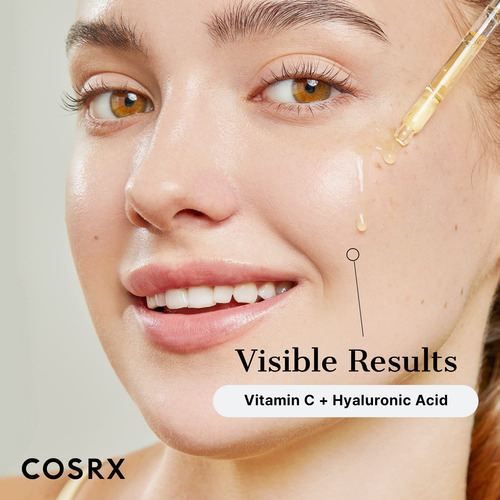Um sérum leve de reforço de vitamina C. Combata os primeiros sinais de envelhecimento e melhore o brilho da pele com o sérum leve e hidratante de vitamina C. – Um sérum leve de reforço de vitamina C. Combata os primeiros sinais de envelhecimento e melhore o brilho da pele com o sérum leve e hidratante de vitamina C. – Teste de contato recomendado: este sérum consiste em vitamina C pura altamente concentrada. Recomenda-se testar o corpo antes de usá-lo no rosto. – Ingredientes dermatológicos: a vitamina C pura (ácido ascórbico) ajuda a obter uma pele jovem e brilhante. A supervitamina E (tocotrienol) ajuda a combater os sinais de envelhecimento e retarda os danos à pele. O ácido hialurônico fornece uma rica hidratação profunda na pele e ajuda a reduzir a aparência de linhas finas e rugas. – Como usar: Agite 1 a 2 vezes antes de usar e aplique 2 a 3 gotas uma ou duas vezes ao dia. Para uso diurno, continue com protetor solar SPF 30+. Pode ser aplicado sob a área dos olhos; evite contato visual direto. Guarde na geladeira para evitar a oxidação. – Padrões COSRX: Todos os produtos COSRX são formulados com ingredientes amigáveis à pele que aliviam a pele irritada. Hipoalergênico, testado dermatologicamente, sem testes em animais, sem parabenos, sem sulfatos, sem ftalatos