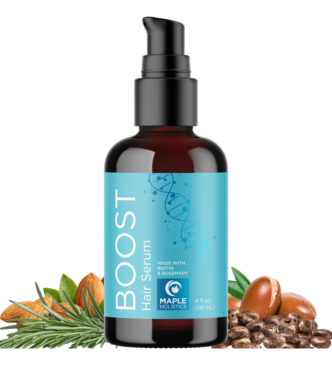 Dê um impulso ao seu cabelo com biotina, óleo de alecrim e óleo de rícino preto jamaicano para cuidar dos cabelos. Nossa fórmula para queda de cabelo está repleta de vitaminas, minerais e ervas, incluindo óleos essenciais de hortelã e lavanda e extrato de cafeína, que nutrem e rejuvenescem o couro cabeludo. Espere cabelos mais grossos e saudáveis, mais macios e lisos. Acreditamos em ingredientes reais para resultados reais, e é por isso que nossos produtos para crescimento capilar são embalados com extratos botânicos e ingredientes naturais para fornecer produtos de autocuidado que você pode se sentir bem ao usar. Na Maple Holistics, acreditamos que você nunca deve sacrificar os resultados ao escolher fórmulas mais naturais. É nossa missão fornecer uma ampla gama de produtos de beleza e bem-estar acessíveis sem muitos dos sintéticos comuns encontrados nas principais marcas. – Biotina para a Vitória – O óleo de biotina para o crescimento do cabelo está no centro do nosso sérum capilar de alecrim e biotina para cabelos finos e acreditamos que ele pertence a todos os produtos espessantes para cabelos, tanto para homens quanto para mulheres – Ingredientes Superstar – Nosso sérum Boost Biotina para o crescimento do cabelo é repleto de nutrientes botânicos óleos e extratos, incluindo óleo essencial de lavanda e alecrim, além de óleo de cafeína para o crescimento do cabelo – Ativador do couro cabeludo – Cabelos volumizados, espessos e cheios começam no couro cabeludo, e é por isso que desenvolvemos este sérum de couro cabeludo para o crescimento do cabelo com alguns dos melhores produtos para espessamento de cabelo para homens e mulheres – Fórmula exclusiva – Este não é um soro comum para queda de cabelo, graças a ingredientes notáveis, como cafeína, óleo de argan, vitamina B5, rícino preto, sálvia, aminoácidos e óleos de menta e alecrim para o crescimento do cabelo – Maple Holistics Quality – Acreditamos em ingredientes reais para resultados reais, que é por isso que nosso sérum de crescimento capilar para homens e mulheres é repleto de óleos e extratos nutritivos para uma aparência bonita cabelo