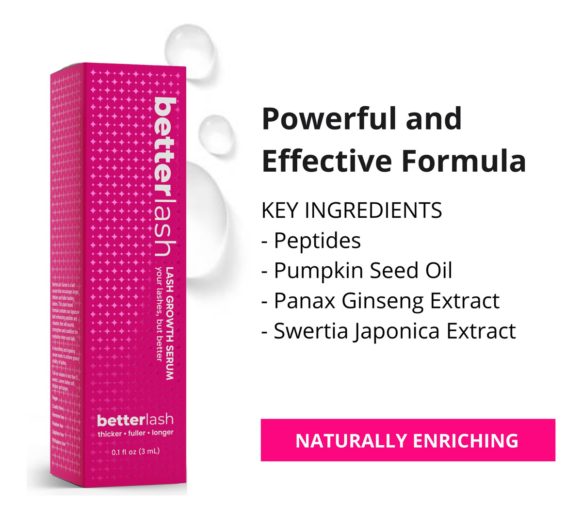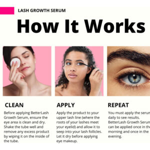 O que é: Nosso sérum de crescimento BetterLash mais vendido ajuda a nutrir e reparar seus cílios com vitaminas, peptídeos e antioxidantes, deixando-os com uma aparência mais longa, espessa e cheia em menos de 4 a 8 semanas. O que mais você precisa saber: o BetterLash Growth Serum é 100% limpo e livre de crueldade, nossos ingredientes incluem extrato de semente de abóbora, extrato de panax ginseng e extrato de Swertia Japonica para ajudar a aumentar e melhorar os cílios. – Cílios fortes e longos criados naturalmente com o Sérum BetterLash. Nosso sérum de cílios natural e eficaz ajuda os cílios a atingirem seu potencial máximo para acentuar seus cílios naturais em 4 a 6 semanas. – PEPTÍDEOS EFICAZES são encontrados nos produtos BetterLash para incluir os ingredientes mais populares do mercado para realçar os cílios. – Os INGREDIENTES NATURAIS incluem extrato de semente de abóbora, extrato de panax ginseng e extrato de swertia japonica para ajudar a aumentar e melhorar os cílios. Todos os nossos ingredientes são selecionados para fortalecer e hidratar os cílios. – A formulação segura e anti-irritação em nossa fórmula é segura para uso nos olhos e cílios mais delicados. Pode ser usado de manhã e à noite sem irritação devido à nossa formulação natural à base de água. – APLICAÇÃO FÁCIL com o pincel de ponta fina da BetterLash que permite que nosso sérum seja aplicado nos cílios com pouco esforço. O pincel Betterlash foi projetado para ser aplicado na linha dos cílios, de um canto ao outro do olho, para obter cílios uniformes e cheios.