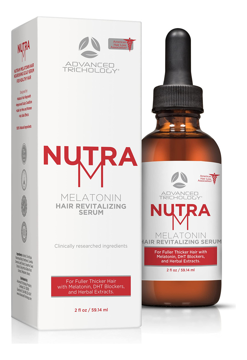 O Sérum de Crescimento Capilar NuTram foi desenvolvido para aproveitar o poder da MELATONINA tópica e dos bloqueadores naturais de DHT para ajudar a reverter os efeitos da queda de cabelo. Nossa fórmula é totalmente única e garante resultados. AGITE VIGOROSAMENTE ANTES DE CADA APLICAÇÃO. NIACINA TÓPICA: A niacina pode, para algumas pessoas, causar rubor temporário, vermelhidão na área de aplicação e leve coceira. Isso é normal e traz mais sangue para o couro cabeludo. Se isso ocorrer, basta reduzir o uso para cada 48 horas. Instruções: Aplique 1 a 2 ml (1 conta-gotas é igual a 1 ml) diretamente nas áreas de queda de cabelo no couro cabeludo. Massageie no couro cabeludo e deixe descansar durante a noite. Recomendado para ser usado pelo menos uma vez ao dia. AGITE VIGOROSAMENTE ANTES DE CADA APLICAÇÃO Aviso: Use conforme as instruções. Evite o contato com os olhos. Somente para uso externo. Não é para consumo interno. – O SÉRUM DE CRESCIMENTO CAPILAR CONFIÁVEL E APROVADO*: para homens e mulheres para apoiar o crescimento do cabelo. A pesquisa mostrou que existem inúmeras razões para a perda de cabelo, incluindo DHT, estresse e respostas inflamatórias anormais. Até agora, simplesmente não havia nenhuma fórmula tópica que bloqueasse todos os três. Devido à niacina no produto, pode haver uma pequena aparência de vermelhidão na pele após a aplicação. Isso desaparecerá em 10 a 15 minutos. – FÓRMULA TÓPICA DE CRESCIMENTO TESTADO POR DERMATOLOGISTAS E SEM GRAXA: O soro tópico NuTram Topical DHT Blocker é um sérum capilar natural revolucionário feito de melatonina e uma tintura natural patenteada como principal ingrediente de crescimento capilar. Fácil de modelar seu cabelo com a fórmula de queda de cabelo NuTram, que é isenta de óleo e não deixa resíduos. – APROVADO PELA AMERICAN HAIR LOSS ASSOCIATION*: Primeiro e único sérum de crescimento capilar aprovado* de todos os tempos. Apoiado por 20 anos de experiência em tratamento de queda de cabelo em clínicas. A Advanced Trichology possui e opera clínicas de tratamento de queda de cabelo nos Estados Unidos há 20 anos. – HIPOALERGÊNICA, SEM GLÚTEN, FABRICADA NOS EUA com ingredientes globais, sem trigo e vegetariana. Sem testes em animais. Teste terceirizado certificado puro, com garantia de devolução do dinheiro e independente. Conformidade com cGMP Recomendada para uso com a vitamina FoliGrowth para obter os melhores resultados possíveis. – DESENVOLVIDA EM CLÍNICAS DE TRATAMENTO DE QUEDA DE CABELO: A linha Advanced Trichology foi desenvolvida em nossos próprios centros de tratamento de queda de cabelo de primeira linha. O soro tópico NuTram para couro cabeludo foi testado cientificamente em nossas clínicas para aqueles que queriam uma alternativa natural que realmente funcionasse. O sérum de melatonina para crescimento capilar NuTram usa uma fórmula proprietária que já demonstrou um sucesso incrível para mulheres e homens. tratamiento para la caida del cabello