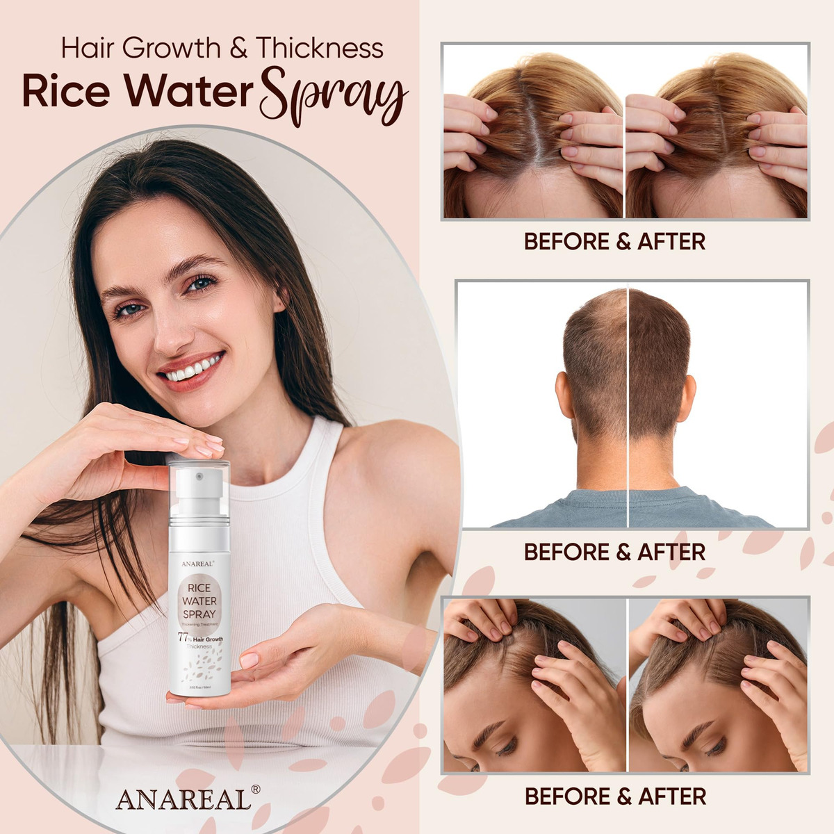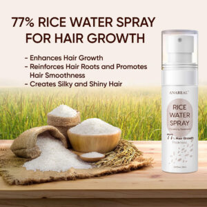Descrição 1. Pulverize 2-4 bombas no couro cabeludo da área afetada. 2. Para obter melhores resultados, massageie suavemente a área pouco tempo após a aplicação e deixe repousar por no mínimo 30 minutos. Você também pode permitir que ele passe a noite. 3. Recomendamos usá-lo todos os dias. Você pode ver os resultados em menos de 2 semanas. E depois de usá-lo por 4 semanas, você notará que seu couro cabeludo fica mais saudável, sua queda de cabelo diminui e você testemunhará cabelos saudáveis e brilhantes. – Promova o crescimento do cabelo: nosso spray de água de arroz, enriquecido com biotina, cafeína e óleo de rícino, estimula o crescimento do cabelo desde a raiz, revitaliza os cabelos secos e danificados, repara pontas duplas, protege contra quebras e nutre cabelos mais fortes e cheios. É especialmente benéfico para o crescimento do cabelo feminino, que está entre os melhores tratamentos para queda de cabelo para mulheres. – Minimiza a queda e a queda de cabelo: o soro para crescimento de cabelo feminino com água de arroz ANAREAL se destaca como uma excelente solução entre os tratamentos de queda de cabelo para mulheres. Diminui eficientemente a queda e o enfraquecimento do cabelo, nutrindo as raízes do cabelo e revitalizando os folículos capilares. – Nutrição do couro cabeludo e do cabelo: nossa água de arroz para o crescimento do cabelo, com água de arroz, óleos essenciais e uma mistura de nutrientes, penetra profundamente no couro cabeludo. Melhora a circulação, combate a caspa e acalma a pele irritada e sensível. Simultaneamente, promove o fortalecimento, alongamento, nutrição e proteção do cabelo. – Adequado para todos os tipos de cabelo: nosso sérum de crescimento capilar feminino, uma solução ideal e saudável para queda de cabelo, foi desenvolvido para uso por homens e mulheres. Este spray de água de arroz é compatível com todos os tipos de cabelo, incluindo cabelos normais, finos, coloridos e encaracolados. – Ingredientes naturais: A ANAREAL desenvolveu sua Água de Arroz para o Crescimento do Cabelo com ingredientes naturais para criar um tratamento potente e completo para o crescimento do cabelo. A água de arroz, enriquecida com uma infinidade de vitaminas e minerais, estimula o crescimento de cabelos longos, ao mesmo tempo que aumenta a força, maciez e brilho dos cabelos.