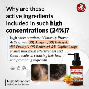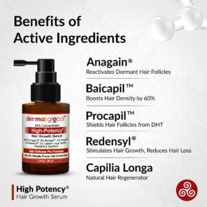 Obtenha resultados visíveis em 90 dias – Anagain reativa folículos dormentes: Anagain, um extrato vegetal de brotos de ervilha, tem como alvo as células-tronco do folículo piloso para estimular o crescimento. Estudos clínicos mostram um aumento de 78% no crescimento do cabelo e redução da perda de cabelo em 90 dias, fornecendo uma solução natural para cabelos mais grossos e cheios. Baicapil aumenta a densidade do cabelo em até 60%: essa mistura de extratos de baicalina, soja e germe de trigo revitaliza os folículos e estimula o crescimento. Os ensaios clínicos mostram um aumento de 60% na densidade do cabelo em 90 dias, reduzindo a queda do cabelo e melhorando a saúde do couro cabeludo. Procapil fortalece e reduz a perda de cabelo: Procapil melhora a circulação do couro cabeludo e protege os folículos do DHT, uma das principais causas da queda de cabelo. Estudos revelam uma melhora de 121% no crescimento do cabelo em 4 meses, tornando-o essencial para reduzir o emagrecimento e promover o crescimento. Ativador de crescimento comprovado Redensyl: Redensyl reativa as células-tronco do folículo piloso para reduzir a queda de cabelo em 85% e gerar até 28.000 novos cabelos em 3 meses. Ele acelera o crescimento, promovendo cabelos mais grossos e fortes de forma eficaz. Regenerador natural de cabelo Capilia Longa: derivado da cúrcuma, o Capilia Longa aumenta a densidade em 27% e reduz a queda de cabelo em 89% em 3 meses. Sua fórmula à base de plantas restaura os folículos e garante o crescimento do cabelo a longo prazo. – 1. O que faz com que esse soro se destaque de outros produtos para crescimento capilar? Resposta: Este soro apresenta uma concentração potente de 24% de ativos vegetais clinicamente comprovados, incluindo Anagain, Baicapil, Procapil e Redensyl. Ao contrário dos tratamentos convencionais, ele atinge diretamente as causas do emagrecimento, estimula os folículos adormecidos e fortalece os cabelos existentes. Sua mistura de extratos naturais e ciência de ponta garante resultados seguros, eficazes e duradouros para cabelos mais saudáveis. – 2. Por que esses ingredientes ativos estão incluídos em concentrações tão altas (24%)? É seguro para uso diário? Resposta: A concentração de 24% garante resultados poderosos ao fornecer ativos clinicamente comprovados à base de plantas, como Anagain, Baicapil, Procapil e Redensyl, em níveis ideais para combater a queda de cabelo, reativar os folículos e promover o crescimento. É totalmente seguro para o uso diário, pois a fórmula é isenta de produtos químicos agressivos e enriquecida com extratos naturais, garantindo sua suavidade no couro cabeludo. – 3. Como esse soro ajuda no crescimento do cabelo? Resposta: Este soro contém ativos clinicamente comprovados, como Anagain, Baicapil, Capilia Longa e Tripeptídeos, que estimulam os folículos capilares adormecidos e reativam a fase de crescimento. Esses ingredientes poderosos melhoram a saúde folicular, aumentam a produção de colágeno e aumentam a densidade do cabelo. Estudos clínicos mostram uma melhora de até 78% no crescimento do cabelo em 90 dias, oferecendo uma solução confiável para obter cabelos mais espessos, saudáveis e vibrantes. – 4. Esse sérum pode impedir completamente a queda de cabelo? Resposta: Sim, este sérum foi desenvolvido para combater a queda de cabelo em sua origem. Com ingredientes como Procapil e Redensyl, ele fortalece os folículos pilosos, melhora o fluxo sanguíneo para o couro cabeludo e bloqueia o DHT, um hormônio conhecido por causar queda de cabelo. Estudos clínicos comprovaram sua eficácia, com uma redução de até 85% na queda de cabelo em apenas alguns meses de uso regular. Não é apenas uma solução rápida, mas uma solução de longo prazo para cabelos mais saudáveis e fortes. – 5. Em quanto tempo posso esperar ver resultados para reduzir a queda de cabelo? Resposta: Consistência é a CHAVE! Com o uso consistente, em apenas 30 dias, você notará uma queda de cabelo significativamente reduzida. Aos 60 dias, os pelos do bebê começarão a crescer, sinalizando a ativação dos folículos adormecidos. Aos 90 dias, você verá um aumento na densidade do cabelo e fios mais grossos. Em 180-270 dias, você terá combatido eficazmente a queda de cabelo e a calvície, obtendo uma cabeça de cabelo mais cheia e saudável.