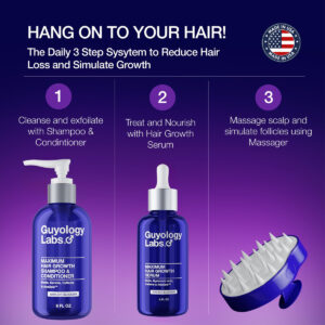 Procurando a melhor solução natural para deixar cabelos mais grossos e cheios sem os efeitos colaterais dos produtos à base de medicamentos? Nosso sérum multipeptídeo e bloqueador de DHT é perfeito para o crescimento do cabelo masculino e para a prevenção da queda de cabelo. Nosso sérum orgânico rico em antioxidantes restaura o cabelo ralo, deixando-o mais espesso e cheio, enquanto nossa formulação que aumenta o colágeno promove um crescimento mais rápido do cabelo e uma nutrição intensa para os folículos. O Guyology Labs tem tudo o que você precisa. Nossos tratamentos tópicos também são perfeitos para cabelos afro-masculinos e negros. Nossos séruns revitalizantes e produtos ricos em nutrição são exatamente o que você precisa para uma rápida regeneração e restauração. Nossos tratamentos orgânicos sem enxágue são o fator chave para um cabelo rico e de crescimento rápido. – REVITALIZE O CRESCIMENTO DO CABELO: ingredientes naturais de crescimento clinicamente comprovados para revitalizar o crescimento do cabelo para cabelos mais cheios, espessos e fortes em 3 meses. Nossa formulação exclusiva de sérum estimulador de crescimento de raízes capilares reduz a queda, perda e queda de cabelo e promove o crescimento ao bloquear o DHT, o hormônio que é uma das principais causas da queda de cabelo. Ao mesmo tempo, estimula o crescimento de novos cabelos e fortalece os folículos existentes para revitalizar o crescimento do cabelo e obter cabelos mais cheios, espessos e fortes. – BASTA USAR DUAS VEZES AO DIA: A fórmula não oleosa penetra rapidamente na haste capilar e no couro cabeludo para aumentar a força interna para aumentar o novo crescimento, o crescimento e melhorar a densidade do cabelo. Use nosso soro estimulador capilar duas vezes ao dia; após a lavagem (não enxágue) e à noite antes de dormir. Continue por no mínimo 3 meses para obter resultados visíveis. – FUNCIONA PARA TODOS OS TIPOS DE CABELO: resultados clinicamente comprovados. Nossa formulação exclusiva contém Anagain, que apresentou esses resultados em ensaios clínicos – 92% disseram que o cabelo cresceu novamente – 95% disseram que a queda de cabelo diminuiu – 80% disseram que o cabelo é menos quebrável – 95% disseram que o cabelo parece melhorado. – INGREDIENTES PODEROSOS E COMPROVADOS: bloqueadores de DHT (incluindo Saw Palmetto) para reduzir a queda, queda e queda de cabelo. Biotina e vitamina E para cabelos mais cheios, espessos e fortes, cafeína para estimular o couro cabeludo, alecrim para acelerar o processo de renovação e crescimento celular e ANaGain para fortalecer os folículos e estimular o crescimento de novos cabelos. Sem fragrância. Isento de sulfato. Sem parabenos. Livre de crueldade. Adequado para veganos. Sérum capilar masculino fabricado nos EUA. – SEGURE SEU CABELO: Recomendamos usar o sérum Guyology Labs com nosso shampoo e condicionador de biotina para o máximo crescimento do cabelo. Combine essa terapia com nossa escova massageadora de couro cabeludo para estimular o couro cabeludo, melhorar a circulação sanguínea vital na raiz do cabelo, esfoliar o couro cabeludo e desbloquear os folículos radiculares.