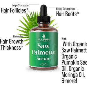 O que nos torna diferentes? Ao contrário dos óleos capilares genéricos, o Hair Thickness Maximizers Saw Palmetto Serum foi feito especificamente para o crescimento do cabelo! Criamos um tratamento capilar não tóxico, limpo, sustentável, livre de crueldade e restaurador para que você possa se sentir confiante em sua aparência. Combinamos o óleo de Saw Palmetto com os melhores óleos de crescimento capilar, como óleo de semente de abóbora, óleo de moringa, óleo de baobá, óleo de semente de amora, óleo de linhaça, óleo essencial de alecrim, óleo essencial de hortelã, óleo essencial de cedro e muito mais! Sinta os benefícios do sérum Saw Palmetto Maximizers para o crescimento do cabelo. Pode ajudar: – Estimular os folículos capilares* – Fortalecer as raízes do cabelo* – Promover o crescimento e a espessura do cabelo* – Suavizar e suavizar o cabelo* – Tratar o couro cabeludo seco* – Com óleo de palmeira, óleo de semente de abóbora, óleo de moringa e muito mais! Uso sugerido: Aplique algumas gotas no couro cabeludo da área afetada e massageie suavemente no couro cabeludo. Deixe agir durante a noite ou no mínimo 30 minutos antes de tomar banho. Aplique 2 a 4 vezes por semana. ====== Ingredientes: palmeira orgânica, óleo de semente de abóbora orgânico, óleo de moringa orgânico, óleo de baobá orgânico, óleo de semente de amora orgânica, óleo de linhaça orgânico, óleo essencial de alecrim orgânico, óleo essencial de hortelã orgânico, óleo essencial de cedro orgânico, óleo essencial de orégano orgânico Uso sugerido: aplique algumas gotas no couro cabeludo da área afetada e massageie suavemente na área afetada o couro cabeludo. Deixe agir durante a noite ou no mínimo 30 minutos antes de tomar banho. Aplique 2 a 4 vezes por semana. – O que nos torna diferentes? Ao contrário dos óleos capilares genéricos, o Hair Thickness Maximizers Saw Palmetto Serum foi feito especificamente para o crescimento do cabelo! Criamos um tratamento capilar não tóxico, limpo, sustentável, livre de crueldade e restaurador para que você possa se sentir confiante em sua aparência. – Combinamos o óleo de palmeira com os melhores óleos de crescimento capilar, como óleo de semente de abóbora, óleo de moringa, óleo de baobá, óleo de semente de amora, óleo de linhaça, óleo essencial de alecrim, óleo essencial de hortelã, óleo essencial de cedro e muito mais! – Fortalecer, reabastecer, reparar e proteger: o óleo de Saw Palmetto tem sido tradicionalmente usado para estimular e nutrir os folículos pilosos. Este tratamento tópico para o crescimento do cabelo pode ser usado como parte de sua rotina diária de cuidados com o cabelo para evitar danos e ajudar a restaurar cabelos mais fortes, grossos e cheios. – Para todos os tipos de cabelo: mulheres e homens com cabelos fracos, cabelos ralos, cabelos recuados, encaracolados, lisos, curtos, longos, secos, ondulados, crespos ou tratados quimicamente, tranças e tecidos. Nutre profundamente os tipos de cabelo de 1A a 4C e cabelos com baixo a alto nível de porosidade. – Fabricado de acordo com os regulamentos de GMP da mais alta qualidade e os padrões dos EUA. Criamos óleos e suplementos capilares conscientes. Este produto é vegano e livre de produtos químicos agressivos e glúten. Somente para uso tópico.