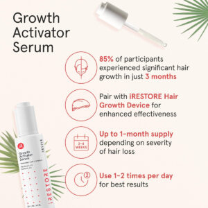 Nosso soro ativador de crescimento é um sérum transformador do couro cabeludo meticulosamente elaborado para tratar de vários problemas com o cabelo. Este potente sérum para mulheres que crescem o cabelo, enriquecido com Redensyl e Capixyl, foi desenvolvido para ser o melhor sérum para espessamento capilar. Formulado especificamente, nosso sérum para queda de cabelo promove cabelos mais espessos e cheios, oferecendo uma solução poderosa para quem busca o melhor sérum para crescimento capilar. Nosso sérum de crescimento capilar Redensyl não é apenas um sérum hidratante para o couro cabeludo; é um sérum abrangente de crescimento capilar para mulheres, voltado para cabelos finos com suas propriedades nutritivas e revitalizantes. Se você está em busca do melhor sérum de crescimento capilar para mulheres, não procure mais. Nosso sérum para cabelo é repleto de ingredientes naturais à base de plantas, o que o torna um excelente sérum de crescimento capilar que suporta a densidade do cabelo. Este sérum de crescimento capilar se destaca como um sérum espessante de cabelo para mulheres, oferecendo uma solução para queda de cabelo, queda de cabelo e promovendo a saúde geral do cabelo. Não é apenas um sérum de crescimento capilar; é um sérum para cabelos que aborda várias questões. Não é apenas um sérum para a espessura do cabelo; é um sérum hidratante para o crescimento do cabelo que nutre o couro cabeludo, tornando-o o melhor sérum de crescimento capilar para mulheres que buscam cabelos mais grossos e cheios. Experimente nosso sérum hidratante para couro cabeludo hoje e embarque em sua jornada para um cabelo mais espesso, cheio e saudável. O melhor sérum espessante de cabelo para mulheres. Não é apenas um sérum de crescimento capilar; é o melhor sérum de crescimento capilar para mulheres, proporcionando hidratação, tratando a queda de cabelo e promovendo a saúde geral do cabelo. Confie em nosso sérum para cabelos para oferecer os resultados que você deseja. A melhor escolha para quem procura um sérum de crescimento capilar limpo e vegano e o melhor sérum de crescimento capilar para mulheres. Se você precisa de um sérum para queda de cabelo, sérum para queda de cabelo ou simplesmente deseja sérum para cabelos grossos, sérum para cabelos mais cheios, nosso sérum para cabelos é a solução. – NÃO IRRITANTE E DE RÁPIDA ABSORÇÃO: Nosso sérum ativador de crescimento capilar é formulado com uma mistura de ingredientes limpos e potentes, como Redensyl, Capixyl e Biotina, que garantem rápida absorção, promovendo maior crescimento e densidade capilar para serem notados cabelos cada vez mais espessos e cheios ao longo do tempo – REVITALIZE A SAÚDE DO CABELO: Enriquecido com ginseng e peptídeos, nosso sérum capilar fortalece o cabelo da raiz às pontas. Com Stinging Nettle e Saw Palmetto, nosso sérum de couro cabeludo para o crescimento do cabelo atua como um bloqueador natural de DHT, reduzindo efetivamente a queda do cabelo e evitando mais queda de cabelo – NUTRIÇÃO E HIDRATAÇÃO PARA TODOS OS TIPOS DE CABELO: Enriquecido com óleo de abacate e extratos de cogumelos que hidratam profundamente o couro cabeludo e o cabelo, resultando em melhor textura e vitalidade. Orgulhosamente livre de parabenos, sulfatos, ftalatos e outras drogas nocivas – INGREDIENTES VEGANOS E COMPROVADOS PELA CIÊNCIA: É um dos melhores séruns de crescimento capilar para queda de cabelo, totalmente livre de crueldade com ativos vegetais, que são seguros para cabelos coloridos e eficazes para todos os tipos de cabelo. Sem fragrância adicional, tem um aroma natural calmante de Aloe Vera, que também alivia a coceira no couro cabeludo – RESULTADOS COMPROVADOS: A iRestore se orgulha de ajudar inúmeras pessoas a embarcar em sua jornada de crescimento capilar. Recupere sua confiança com nosso Sérum Ativador de Crescimento, que oferece resultados visíveis em apenas 8 semanas de uso consistente