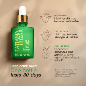 Otimize a saúde do seu cabelo com o sérum de crescimento capilar para mulheres TATIANA IRIZAR Descubra os segredos de uma juba luxuosa com o sérum de crescimento capilar TATIANA IRIZAR, sua solução definitiva para o cuidado do cabelo! Feito nos EUA com uma mistura de ingredientes naturais, este sérum capilar para queda de cabelo foi desenvolvido para revigorar e fortalecer seus cabelos. Características principais: Ingredientes clinicamente comprovados: Infundido com biotina, alecrim, cafeína e Amla, nosso sérum de crescimento capilar feminino é cientificamente formulado para nutrir seu cabelo. Cada componente é selecionado por sua eficácia na promoção de cabelos mais espessos e saudáveis. Qualidade certificada pela IBA: orgulhosamente fabricado nos EUA, nosso sérum capilar para o crescimento do cabelo é rigorosamente testado em laboratório e certificado pela International Beauty Association. Confie em um produto escolhido por mais de 100.000 usuários por sua confiabilidade e desempenho. Fórmula não oleosa com aroma de ervas frescas: experimente a facilidade de um sérum não oleoso para queda de cabelo para mulheres que não deixa resíduos. Aprecie o aroma refrescante de ervas que torna cada aplicação um ritual agradável e edificante. Resultados rápidos e duráveis: testemunhe melhorias visíveis na espessura e na saúde do seu cabelo em apenas 90 dias. Para obter melhores resultados, aplique de forma consistente no couro cabeludo diariamente, garantindo uma cobertura completa. Versátil e suave: nosso sérum espessante capilar é adequado para todos os tipos de cabelo. Se você está lidando com frizz, ressecamento ou emagrecimento, esta fórmula foi projetada para melhorar a vitalidade natural do cabelo sem produtos químicos agressivos. TATIANA IRIZAR Hair Serum Growth é mais do que apenas um produto de beleza; é um tratamento capilar revitalizante que nutre o couro cabeludo e os folículos. Ideal para quem busca uma solução para queda e queda de cabelo, este sérum oferece uma abordagem holística ao cuidado do cabelo. A combinação de extratos naturais potentes e pesquisas científicas avançadas fornece um sérum poderoso e eficaz para queda e crescimento do cabelo. Por que escolher TATIANA IRIZAR? Eficaz para queda de cabelo: nosso sérum de crescimento capilar para mulheres tem como alvo as causas da queda de cabelo, oferecendo uma solução natural para aumentar a densidade do cabelo. Fácil aplicação: vem com um conta-gotas para uma aplicação precisa. Use em cabelos úmidos ou secos, aplicando diretamente no couro cabeludo para uma cobertura total. Seguro para uso diário: Livre de parabenos e sulfatos, formulado para uso diário sem causar irritação no couro cabeludo. Transforme sua rotina de cuidados com os cabelos com os séruns de crescimento capilar TATIANA IRIZAR e adote um cabelo mais cheio e saudável. Adicione ao carrinho e comece sua jornada para um cabelo mais saudável hoje mesmo! Abrace a confiança em cada mecha e deixe o sérum capilar TATIANA IRIZAR abrir caminho para uma juba revitalizada e linda. Experimente agora e veja a diferença! – INGREDIENTES NATURAIS PARA MELHORAR O CRESCIMENTO DO CABELO: Descubra o poder da natureza com o sérum de crescimento capilar exclusivo da TATIANA IRIZAR para mulheres fabricado nos EUA. Nossa fórmula contém vegetais de origem natural clinicamente comprovados, incluindo ingredientes essenciais como alecrim, amla, urtiga, cafeína, pantenol e biotina. Esses compostos são conhecidos por sua capacidade de apoiar e promover a saúde do cabelo, tornando-os fundamentais para nossa mistura exclusiva. – TESTADO EM LABORATÓRIO E CERTIFICADO PELA IBA: Fabricado nos EUA, desenvolvido por especialistas e rigorosamente testado em condições rigorosas de laboratório, nosso sérum capilar para crescimento capilar é certificado pela International Beauty Association (IBA). Com a confiança de mais de 100.000 mulheres e homens, esta fórmula é adaptada para nutrir o cabelo, promovendo uma aparência saudável, espessa e brilhante. Sem parabenos e sem sulfato. – PERFUME DE ERVAS FRESCAS NÃO OLEOSAS: Eleve sua rotina de cuidados com o cabelo com nosso tratamento de crescimento capilar não oleoso para mulheres. Esta fórmula vegana, feita nos EUA, livre de crueldade, foi especialmente projetada para nutrir o ecossistema folicular e o couro cabeludo, promovendo cabelos mais saudáveis e cheios, sem deixar resíduos. Experimente o frescor revigorante do aroma de ervas a cada aplicação. – RESULTADOS RÁPIDOS E DURADOUROS: Obtenha melhorias visíveis na aparência do cabelo em apenas 90 dias com nosso sérum capilar fácil de aplicar. Basta encher o conta-gotas, aplicar diretamente no couro cabeludo diariamente e usar em cabelos secos ou secos com toalha, dia ou noite. O uso contínuo garante uma melhoria sustentada da saúde e plenitude do cabelo. Cada conta-gotas completo dispensa aproximadamente 1 ml. Para obter os melhores resultados, recomendamos aplicar pelo menos 1 a 1/2 gotas diariamente. – Adequado para todos os tipos de cabelo: melhore a vitalidade natural do cabelo com nosso versátil sérum para crescimento do couro cabeludo. Ao contrário dos produtos comuns para o crescimento do cabelo, nossa fórmula exclusiva à base de alecrim não apenas aumenta o crescimento do cabelo, mas também promove cabelos mais espessos e saudáveis e ajuda no frizz e no ressecamento do couro cabeludo. Este sérum foi desenvolvido para nutrir a saúde do couro cabeludo, tornando-o ideal para todos os tipos de cabelo.