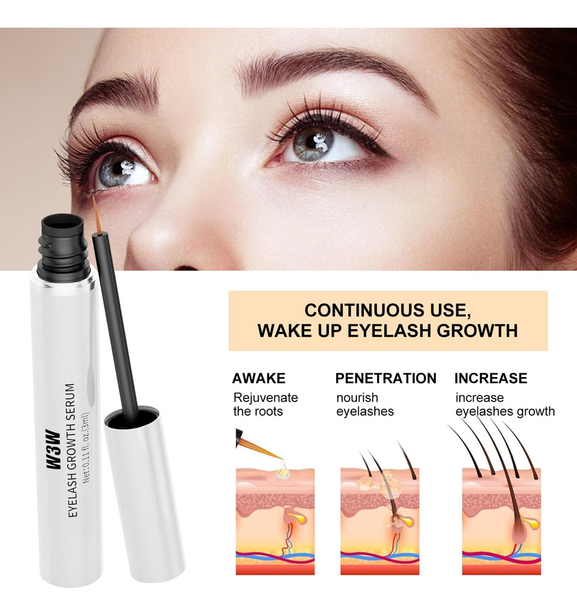 Sérum para crescimento de cílios – Sérum para crescimento de cílios O sérum de crescimento de cílios trabalha diligentemente para fortalecer seus cílios da raiz às pontas. Obtenha os cílios deslumbrantes que você sempre quis com o sérum intensivo de crescimento de cílios — fórmula suave. Ingredientes de origem botânica infundem brilho e brilho sem causar vermelhidão e irritação. Pode ser usado de manhã e à noite – Transformação visível Com uso contínuo por 3-4 semanas, nossa fórmula avançada de sérum para cílios foi projetada para funcionar de forma rápida e eficaz, oferecendo resultados visíveis que você pode ver no espelho – Fácil de usar Nosso rímel é fácil de aplicar, assim como seu delineador favorito. Aplique uma camada fina na linha da raiz e observe seus cílios ficarem mais densos e volumosos – Adequado para todos. Este sérum alongador de cílios é para uso de todos. Obtenha cílios visivelmente mais grossos, longos e brilhantes