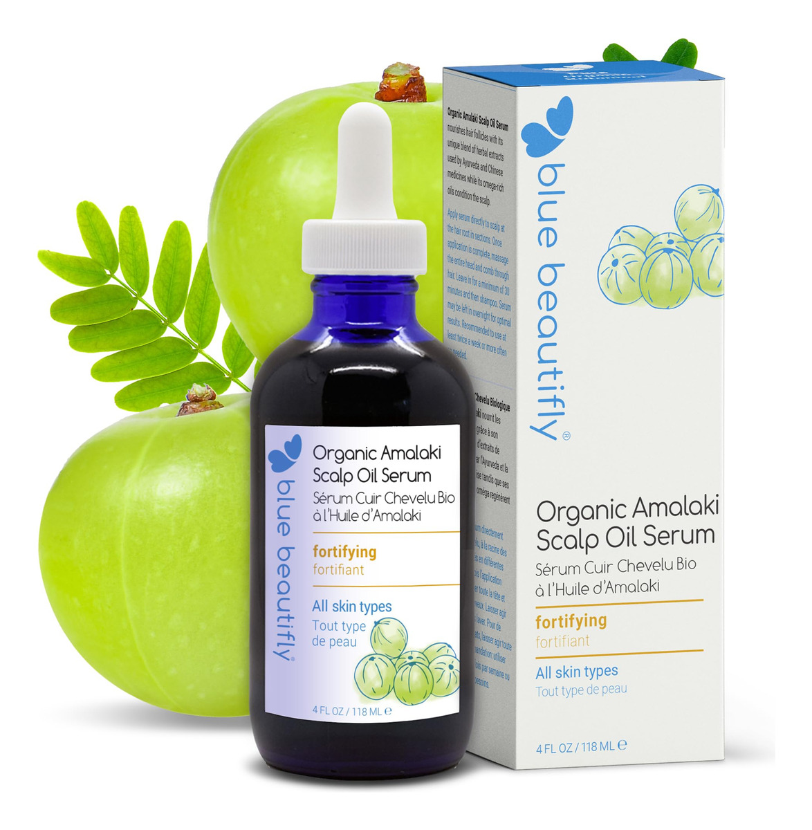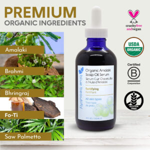 Blue Beautifly Organic Amalaki Scalp Oil Serum contains nothing but natural ingredients that are safe for all types of hair and skin sensitivities. Blue Beautifly Organic Amalaki Scalp Oil Serum is infused with powerful botanical extracts, precious oils, and essential oils with absolutely no additives, fillers, or synthetics. Inspired by ancient sciences, it nourishes, rejuvenates, and promotes vitality by simply delivering potent benefits of holistic plants directly to your scalp and hair. Organic Raw Amalaki. An Ayurvedic herb known for its potent vitamin C content, it nourishes the skin and hair. Organic Raw Brahmi. Used by Ayurveda medicine for promoting hair luster. Organic Raw Bhringraj. Known by Aurveda to promote the health and vitality of the scalp and hair. Organic Raw Fo-Ti. Used by Chinese medicine and validated by recent clinical study for its hair nourishing properties. Organic Raw Saw Palmetto. It nourishes and strengthens the health of the skin. It contains fatty acids and phytosterols. – VOTED #1 BY HAIR FOLLICLES Loaded with organic castor oil, organic rosemary oil, organic jojoba oil, organic argan oil, and organic peppermint oil for hair, our organic hair growth serum enriches your scalp with only a few drops a day, giving your hair that luxurious and soft feel you love. – OMEGA RICH – This organic amla oil is packed with Omega 3, 6, and 9 fatty acids and other vital nutrients that skin and hair root cells use to rejuvenate. Our unique blend of Ayurveda and Chinese medicine herbal extracts makes it the perfect hair serum for frizzy and damaged hair or scalp oil for dry itchy scalp, with no parabens, chemicals, carcinogens, or other harmful chemicals. Dermatologically tested hair care for use on sensitive skin! – SAFE FOR TREATED HAIR – If your hair is natural, bleached, dyed, or permed, this multifunctional organic rosemary oil for hair growth is safe to use for a healthy scalp and vibrant hair. Its unique blend of amino acids and essential nutrients nourish your hair follicles at the root, giving you soft and conditioned hair that is vibrant, strong, and healthy. – EXCELLENT FOR NATURAL HAIR. Strengthens the roots, protects the strands, and softens the hair. – EASY TO USE – Apply our hair growth oil serum in sections, directly to the scalp, at the roots. Afterward, massage your entire head and comb through your hair. Leave in for at least 30 minutes, then shampoo. You can also leave it overnight. Use 2-3 times a week until desired results are achieved. The convenient dropper should be filled no more than 1/3 to prevent dripping.