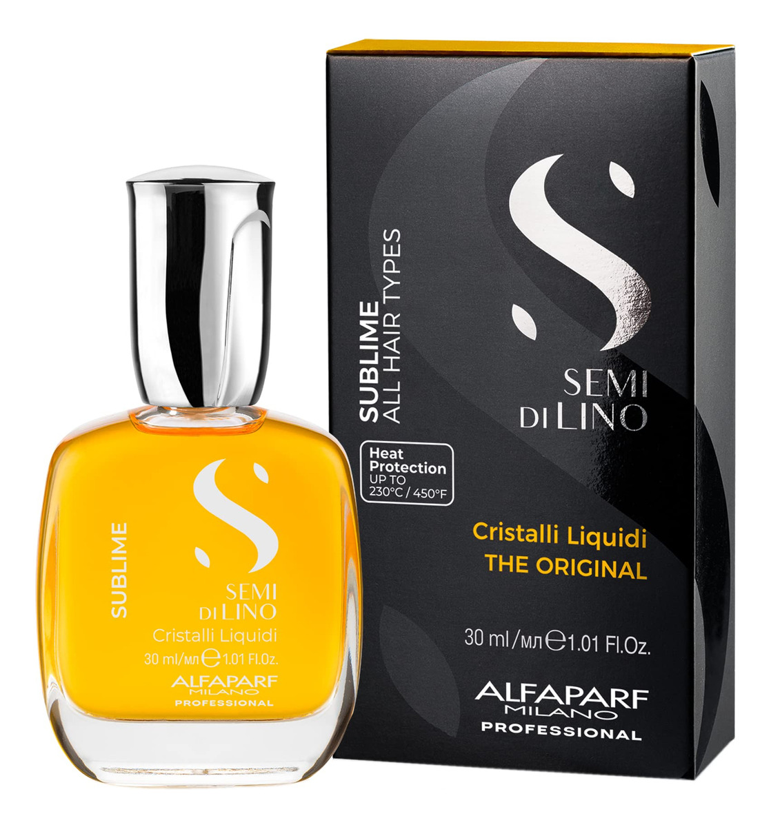 Sérum de óleo capilar Alfaparf Milano Semi di Lino Sublime Cristalli Liquidi com proteção térmica – Sérum antifrizz e spray protetor térmico suavizante com vitamina E para cabelos crespos (1,01 onças/30 ml) – SÉRUM DE ÓLEO CAPILAR ILUMINADOR PARA TODOS OS TIPOS DE CABELO: protege e ilumina instantaneamente a fibra capilar. Dá brilho e brilho ao cabelo. Seu cabelo redescobrirá sua beleza extraordinária. – PROTEGE O CABELO: fornece proteção térmica contra o calor de ferramentas quentes de até 446 graus F. O óleo capilar Cristalli Liquidi envolve seu cabelo com luz e fluidez. Sua textura rica é gentil com o cabelo e a cor do cabelo. – CUIDADO PROFISSIONAL DE BELEZA ITALIANO: Formulado e fabricado na Itália. Os ingredientes ativos incluem óleo de linhaça, que dá brilho e brilho instantâneos e duradouros aos cabelos, e um complexo de vitamina E com propriedades e benefícios antioxidantes. – FÓRMULA VEGANA: O sérum capilar Cristalli Liquidi é isento de ingredientes de origem e derivação animal. Sem óleo mineral, parafina e sulfato. – FÁCIL DE USAR: basta colocar algumas gotas na mão e aplicar nos cabelos úmidos ou secos. Em seguida, estilize conforme desejado sem enxaguar.