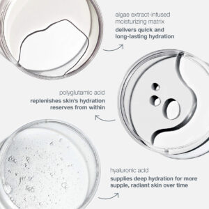 Inicie o ciclo de hidratação da pele: o sérum de longa duração inunda imediatamente a pele com hidratação, repõe por dentro e ajuda a evitar a evaporação futura da hidratação. O sérum hidratante de círculo completo utiliza uma forma aprimorada de ácido hialurônico para penetrar na superfície da pele para uma hidratação profunda e uma pele mais macia e radiante ao longo do tempo. Uma matriz hidratante com infusão de extrato de algas oferece hidratação rápida e duradoura. O ácido poliglutâmico da soja fermentada reabastece as reservas de hidratação da pele por dentro. O ácido lático, um alfa-hidroxiácido (AHA), ajuda a clarear e suavizar a pele. Açúcares derivados de plantas e uma mistura de aminoácidos semelhantes aos naturalmente presentes na pele retêm a água na superfície da pele para ajudar a evitar a evaporação futura da hidratação. Uma mistura pós-biótica de fermento de Lactobacillus e extrato de avena ajuda a equilibrar o microbioma da pele. – Aumento de hidratação profunda: hidrata e tonifica instantaneamente a pele, com duração de mais de 10 horas. – Ácido hialurônico: o HA aprimorado penetra profundamente para hidratação e brilho a longo prazo. – Reposição de umidade: extrato de algas e ácido poliglutâmico retêm a umidade. – Iluminador e suavizante: ácido lático esfolia suavemente para uma tez mais suave e brilhante. – Microbioma equilibrado: a mistura pós-biótica ajuda a apoiar as defesas naturais da pele.