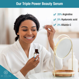 O Dr. Nolan London nasceu do nosso desejo de oferecer fórmulas premium adaptadas às necessidades de cada tipo de pele, que podem ajudar a melhorar a aparência da pele e aumentar a autoconfiança! Contamos com uma das principais equipes de especialistas em cosméticos de Londres e em ingredientes cuidadosamente selecionados e testados para criar produtos profissionais para a pele que são eficazes, poderosos e seguros para cada tipo de pele! Este sérum Argireline é uma excelente opção para manter sua pele macia e jovem sem injeções cosméticas caras! Se você recebeu recentemente injeções para reduzir as rugas, nossa solução de 20% de Argireline pode ajudar a prolongar os efeitos de suas injeções. Além disso, como nosso soro peptídico é enriquecido com ácido hialurônico e vitamina C, ele pode ajudar a clarear a pele, aumentar a retenção de umidade e aumentar a produção de colágeno. Sua pele ficará mais uniforme, macia e brilhante! Ainda não está convencido? Aqui estão algumas das características incríveis deste produto: complexo sérico Advanced Argireline; 20% de solução de Argireline; enriquecido com 5% de ácido hialurônico e 2% de vitamina C; pode ajudar a minimizar a aparência de linhas finas e rugas; pode ajudar a clarear a pele, reduzir a aparência de manchas escuras e uniformizar o tom da pele; pode complementar o efeito de injeções cosméticas e prolongar seus efeitos; integra-se perfeitamente à sua pele rotina de cuidados; fórmula segura para uso doméstico; suave e agradável à pele; rápida absorção sem deixar resíduos; sem sulfatos, parabenos ou óleos que pode irritar sua pele; vegano e sem crueldade; sem perfume; – Revele uma pele radiante em casa: nosso sérum peptídico Dr Nolan London Argireline oferece uma solução leve que atinge a testa dinâmica, as linhas do sorriso e outros sinais de envelhecimento de uma forma “não injetável”. Com a aplicação regular, descubra o potencial da sua pele e desfrute de uma tez jovem, macia e brilhante, tudo no conforto da sua casa! – Um elixir que desafia o envelhecimento: nossa solução de 20% de Argireline é um dos soros mais potentes disponíveis. Formulado com Argerline Amplified, que incorpora uma maior concentração de peptídeos ativos e enriquecido com uma mistura de 5% de ácido hialurônico e 2% de vitamina C, nosso sérum Argerline promete hidratação sustentada, diminuição de manchas escuras e um tom de pele mais equilibrado a cada aplicação! – Turn Back the Clock: mergulhe sua pele em nosso sérum rejuvenescedor que minimiza a visibilidade de linhas finas e rugas, ajudando no relaxamento muscular. Nossa fórmula habilmente elaborada amplifica a produção de colágeno e protege sua pele dos agressores ambientais, revelando uma aparência mais brilhante, firme e macia! – Ingredientes que adoram a pele: estamos comprometidos com a saúde da sua pele e formulamos meticulosamente nosso sérum facial antienvelhecimento para ser compatível com todos os tipos de pele. Livre de produtos químicos agressivos, óleos, sulfatos e parabenos, nosso sérum vegano atende até mesmo a pele mais sensível com seu toque suave. – Cuidados com a pele feitos profissionalmente: o Dr. Nolan London é dirigido por uma das principais equipes de cosméticos de Londres, dedicada a criar soluções premium e seguras para a pele. Seguindo os mais altos padrões, nossos produtos visam ajudá-lo a manter uma pele bonita e jovem.