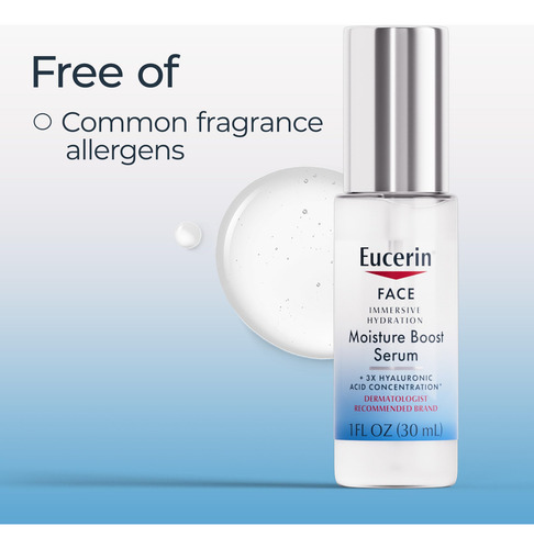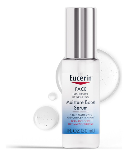 Sérum facial Eucerin Face Immersive Hydration Moisture Boost, sérum ultraleve de ácido hialurônico que suaviza linhas finas e rugas, frasco de 1 onça – Hidratação 24 horas: o sérum facial com ácido hialurônico fornece hidratação 24 horas – Reduz linhas finas e rugas: o sérum hidratante facial reduz visivelmente a aparência de linhas finas e rugas – Para usar: massageie este sérum hidratante facial no rosto e pescoço matinal e a noite como primeira etapa após a limpeza – Fragrância amiga da pele: o sérum facial tem uma fragrância que não agride a pele – Adequado para Pele sensível: o sérum de ácido hialurônico é adequado para todos os tipos de pele, mesmo para peles sensíveis — Não obstrui os poros: o sérum não comedogênico para rosto não obstrui os poros