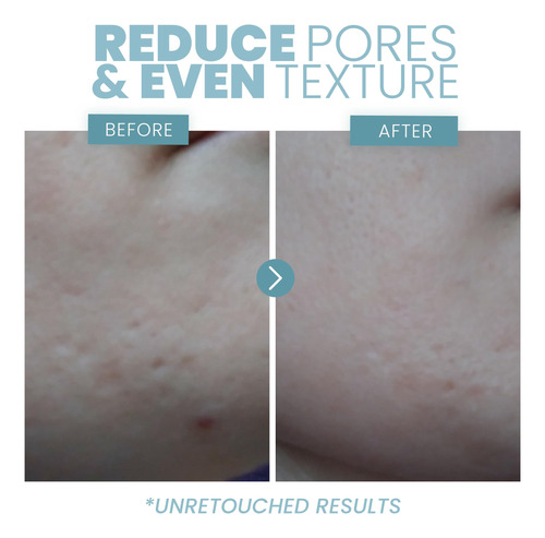 Nosso sérum também é um excelente soro para minimizar os poros, ajudando a refinar a textura da pele e reduzir a aparência de poros dilatados. É um sérum de acne ideal para o rosto, pois fornece controle de imperfeição suave, mas eficaz para tipos de pele oleosa.