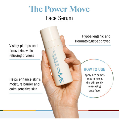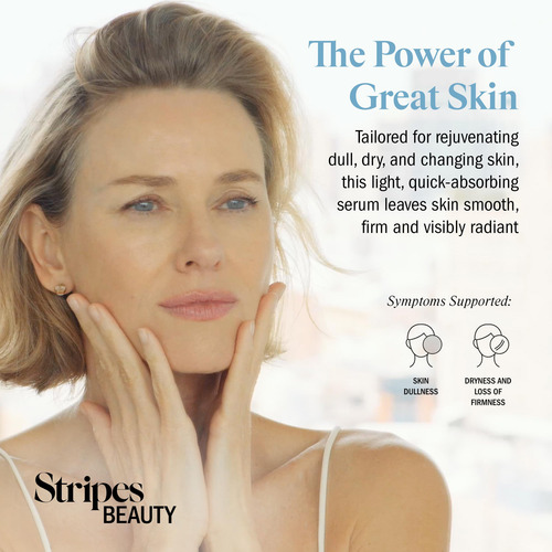 Fortaleça a hidratação da sua pele com nosso potente sérum facial, The Power Move by Stripes Beauty. Este sérum intensamente hidratante e altamente concentrado foi desenvolvido especificamente para problemas de pele madura associados à menopausa, como embotamento, ressecamento e perda de firmeza. Feito com ectoína, esqualano, cinco tipos de ácido hialurônico e cogumelo Poria Cocos, esse sérum leve e de rápida absorção penetra profundamente na pele firme, hidratada e carnuda, suavizando visivelmente as linhas finas. Levemente perfumado com uma mistura moderna de íris, rosa de praia em flor e sândalo cremoso, envolto em um cobertor de camurça e almíscar macio. Aprovado por dermatologistas, hipoalergênico e adequado para peles sensíveis. Use diariamente para obter melhores resultados. – Hidratação intensa: o ácido hialurônico de pesos moleculares variados hidrata, preenche e suaviza profundamente as linhas finas – Firme e suave: o esqualano e a ectoína aumentam a firmeza, suavidade e elasticidade da pele na menopausa – Fórmula leve: o sérum de rápida absorção se encaixa bem com outros produtos, garantindo penetração profunda e resultados visíveis – Essencial diário: use diariamente para obter melhores resultados; aplique após a limpeza tonificador/tônico e antes do hidratante para manter a hidratação — Seguro para pele sensível: aprovado por dermatologistas, hipoalergênico e levemente perfumado com íris, rosa de praia florescente e sândalo cremoso