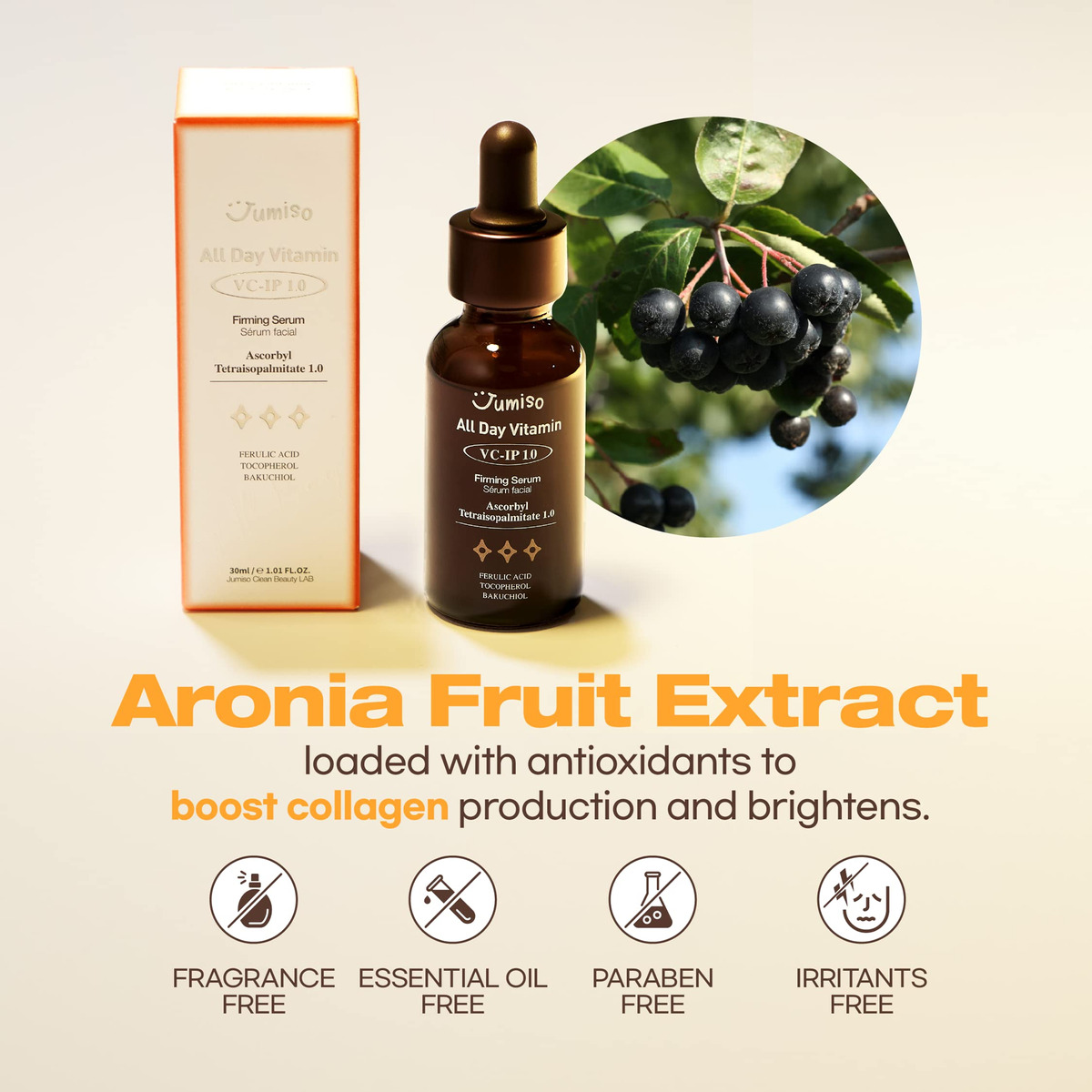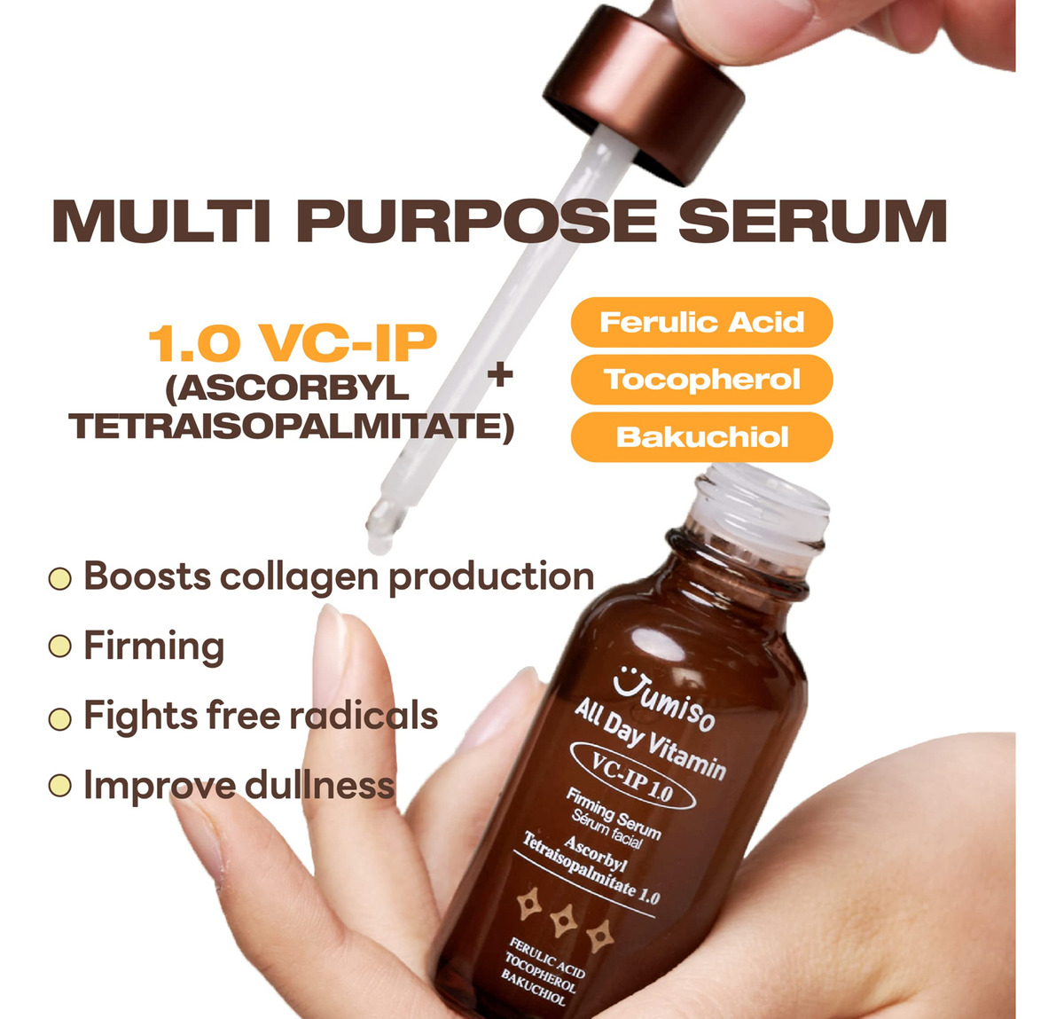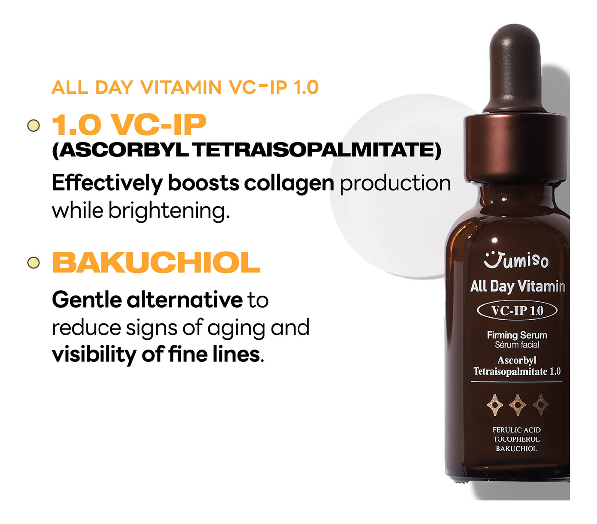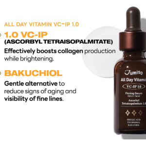 Clinically tested to boost collagen production by 2.6x Stabilized Vitamin C derivative applies effortlessly for brighter and firmer skin. Ascorbyl Tetraisopalmitate(VC-IP) and Bakuchiol Non-irritating, stabilized, non-oxidizing antioxidant – ANTI-AGING, FADES DARK SPOTS FIRMING SERUM – Ascorbyl Tetraisopalmitate(Vitamin C) with Bakuchiol clinically tested to boost collagen production for firmer, brighter skin. – CLINICALLY TESTED – Boost collagen production by 2.6x to reduce the visibility of fine lines and signs of photo-aging. – POWERFUL, NON-IRRITATING FORMULA – Stabalized non-oxidizing multipurpose serum. Non-stinging, non-heating Vitamin C serum for all skin types and sensitive skin. – PATENTED TECHNOLOGY – Aronia Fruit Extract is loaded with antioxidants and also reduces sensitivity for minimal irritation. For all skin types and sensitive skin.