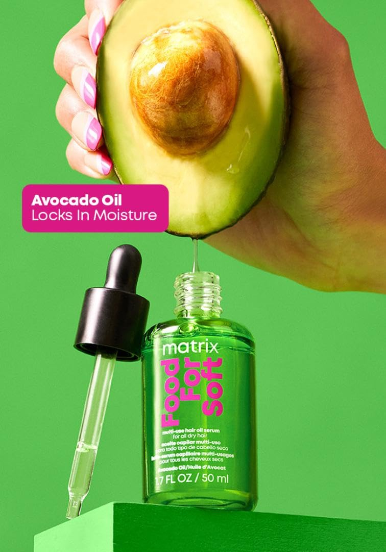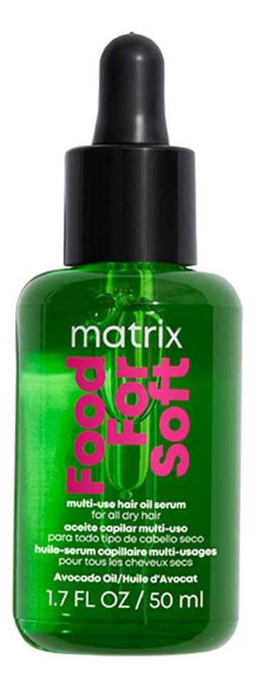 Sérum Matrix Food para cabelos macios | Sérum oleoso multiuso para cabelos secos e quebradiços | Suaviza, suaviza e dá brilho | Com óleo de abacate | Protege contra danos causados pelo calor | Para todos os tipos de cabelo – Óleo hidratante multiuso: sérum e tratamento com infusão de óleo de abacate para proporcionar cabelos mais lisos e macios com proteção térmica. – Benefícios: fornece 7 vezes mais umidade, 5 vezes mais lisos, 72 horas de cabelo extremamente macio* (*Quando usado como um sistema de shampoo, condicionador ou máscara Food For Soft e óleo versus shampoo não condicionador). – Benefícios adicionais: deixa o cabelo hidratado e suave com um acabamento macio e brilho extra. Seguro para cabelos tingidos. – Coleção Food For Soft: regime selecionado de produtos profissionais de salão de beleza, incluindo shampoo hidratante, condicionador hidratante desembaraçante, máscara de tratamento hidratante rica e sérum de óleo multiuso para cabelo. – Uso sugerido: Após o shampoo e condicionador ou máscara de tratamento, aplique várias gotas de sérum oleoso no comprimento médio e nas pontas dos cabelos úmidos ou secos, não enxágue. Estilize como sempre.