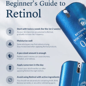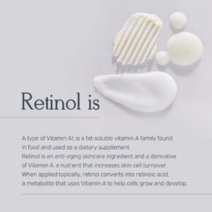 Sérum Retinol Youth 0,1%. O sérum faz parte da nossa linha juvenil de retinol. – [Retinol 0,1%] Recomendado para pessoas que começam a usar retinol nos cuidados com a pele. Formulado com retinol puro (0,1%), um poderoso ingrediente antienvelhecimento. Os benefícios desse soro, além dos efeitos antienvelhecimento, são esfoliação suave, renovação epidérmica e estímulo ao colágeno. Um sérum perfeito para começar a preparar sua pele para o retinol. – [Peptídeos] A mistura harmoniosa de retinol e peptídeo o torna seguro para a pele. Os peptídeos acalmam a irritação, ideais para reparar a barreira cutânea com efeitos calmantes. – [Bakuchiol] Ingrediente antienvelhecimento à base de plantas, ajuda o retinol a suavizar a pele e a eliminar as rugas finas. – [Textura] Sérum aquoso fácil de aplicar nas áreas problemáticas e no cuidado geral. – [Como usar] Bombeie 3-4 vezes após lavar o rosto, como parte da rotina. Use duas vezes por semana, no início, para acostumar a pele com segurança ao retinol. Aos poucos, você pode começar a usá-lo com mais frequência.
