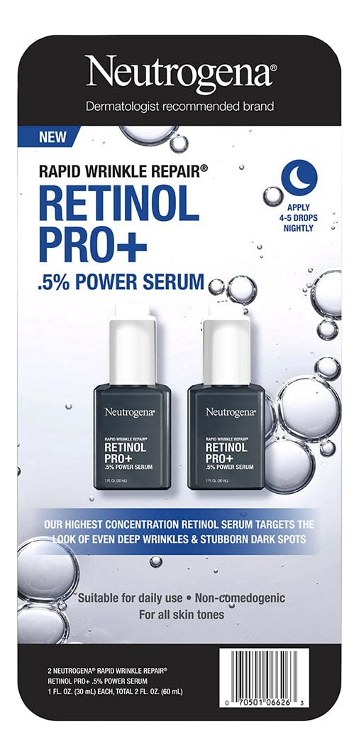 Apresentamos o Sérum Facial Neutrogena Rapid Wrinkle Repair Retinol Pro+ 0,5% Power, uma dupla dinâmica na luta contra os sinais de envelhecimento. Este produto vem em um pacote conveniente de 2, cada um contendo 1 onça fluida desse soro inovador. Revele uma tez mais jovem e radiante com o poder de 0,5% de retinol puro, um ingrediente chave conhecido por sua capacidade de reduzir a aparência de linhas finas e rugas. O sérum Neutrogena Rapid Wrinkle Repair Retinol Pro+ aproveita as potentes propriedades antienvelhecimento do retinol para promover a renovação da pele e diminuir os efeitos do tempo. O que diferencia este sérum é sua fórmula suave e eficaz. Enriquecido com emolientes nutritivos, ele não apenas combate as rugas, mas também hidrata e hidrata a pele. Diga adeus à secura e olá a uma pele mais suave e macia. Projetado pensando no bem-estar da pele, este sérum não é comedogênico e não contém parabenos, o que o torna adequado para uma ampla variedade de tipos de pele. Se você tem pele sensível, oleosa ou mista, pode confiar neste sérum para revitalizar sua pele sem obstruir os poros ou causar irritação. Experimente o poder da ciência e dos cuidados com a pele combinados no soro facial Neutrogena Rapid Wrinkle Repair Retinol Pro+ 0,5% Power. Descubra uma versão mais jovem de si mesmo com esta solução fácil de usar, em dois pacotes, e deixe sua pele irradiar com uma nova luminosidade que desafia o envelhecimento. – Nosso exclusivo complexo antioxidante de recuperação é feito de um antioxidante patenteado derivado da laranja amarga e da vitamina E, conhecida por suas propriedades protetoras e curativas da pele. – Pele visivelmente mais lisa, suavizada as rugas, pele mais firme, pele mais radiante, mais jovem Pele com aparência elegante — Rapid Wrinkle Repair Retinol Pro +0,5% de sérum facial potente, sérum facial antienvelhecimento suave com 0,5% de retinol puro e nutritivo Emolientes, não comedogênicos, sem parabenos, 1 fl. oz — Este sérum facial antienvelhecimento diário contém nossa maior concentração de 0,5% de retinol puro em uma fórmula com emolientes nutritivos. O retinol é uma forma de vitamina A e um ingrediente comprovado por dermatologistas que combate linhas finas, embotamento, rugas e manchas escuras – Combata os sinais visíveis de envelhecimento com retinol para ajudar a reduzir a aparência de rugas profundas, um ingrediente comprovado por dermatologistas que combate linhas finas, embotamento, rugas e manchas escuras – O creme antirrugas para rosto e pescoço hidrata e hidrata a aparência de pele opaca enquanto trabalha profundamente na superfície da pele para reduzir a aparência de rugas e diminuir a aparência de manchas escuras