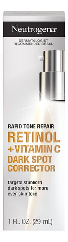 Descrição do produto Use o soro facial Neutrogena Rapid Tone Repair Retinol + Vitamin C Dark Spot Corrector, formulado com retinol e vitamina C para revelar uma pele com aparência mais jovem. Este corretor avançado de manchas escuras funciona para renovar a aparência da pele, ajudando a clarear o tom da pele. O sérum facial ajuda a melhorar a aparência de manchas escuras persistentes e a descoloração da pele, revelando uma pele visivelmente mais uniforme e com aparência mais jovem em apenas uma semana. É especialmente formulado com retinol comprovado por dermatologistas, que combate linhas finas, embotamento, rugas e manchas escuras, e vitamina C, que ajuda a diminuir suavemente a aparência de manchas escuras e a descoloração da pele para um tom de pele mais brilhante e uniforme. Suave o suficiente para todos os tons de pele e adequado para uso diário em uma rotina regular de cuidados com a pele, o sérum clareador é perfeito para o autocuidado em casa. Além disso, é isento de óleos minerais e corantes e vem da marca #1 de retinol mais usada pelos dermatologistas. História da marca da Neutrogena
