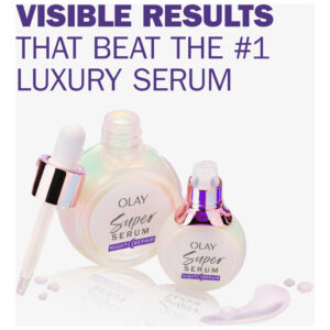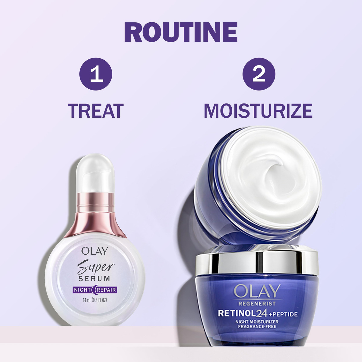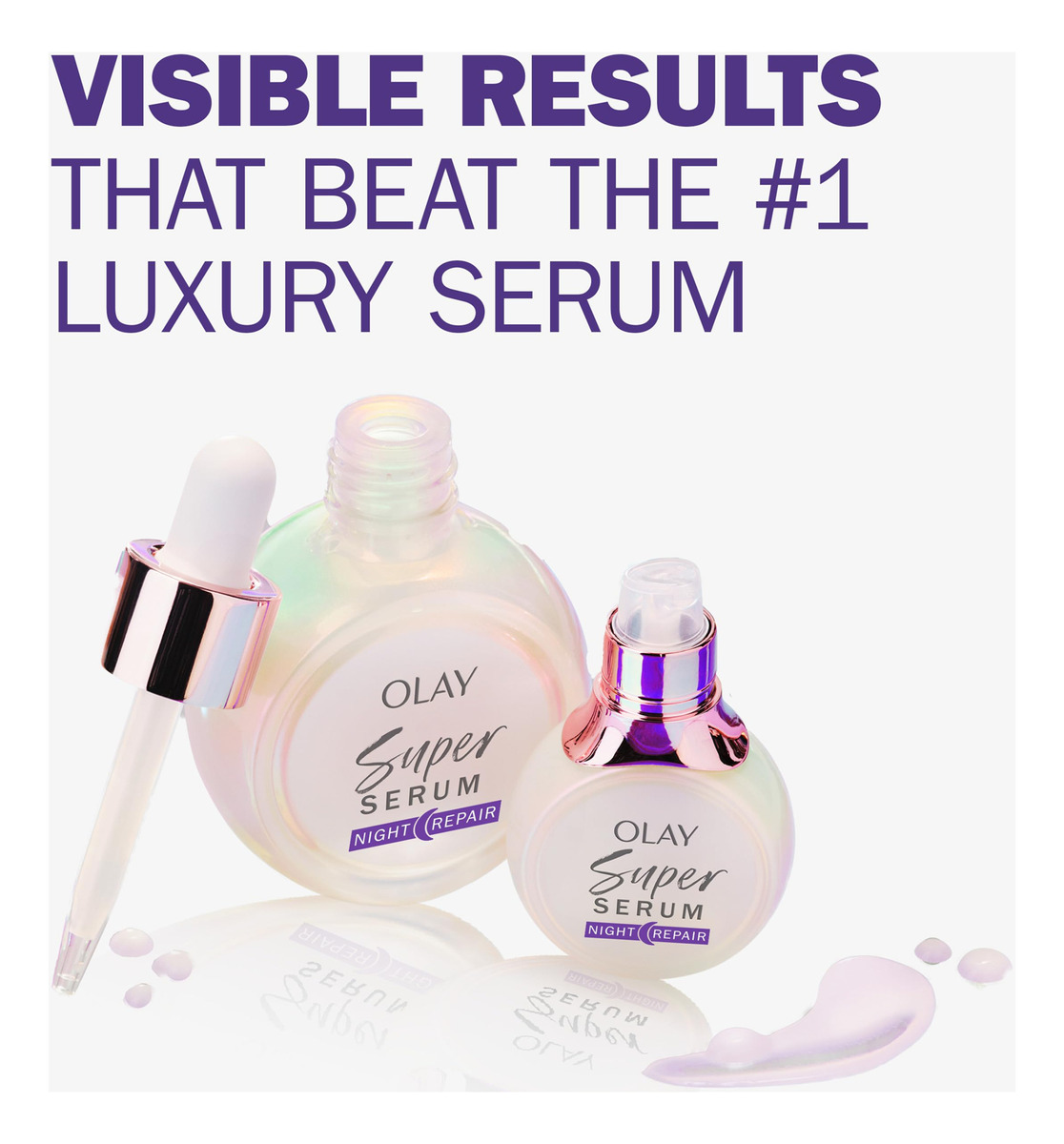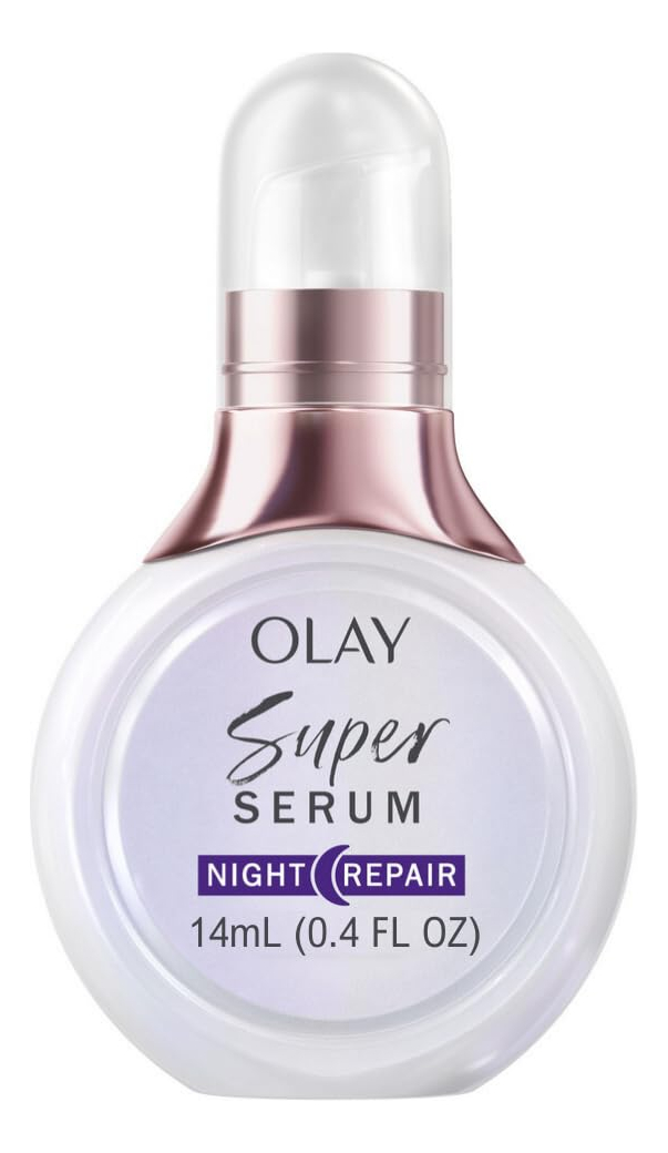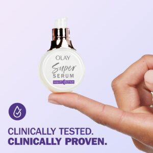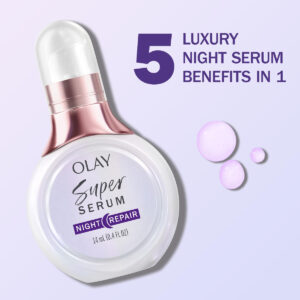 Soro facial leve de renovação de células cutâneas Olay Super Serum Night Repair, tamanho experimental, 5 em 1, 0,4 fl oz, tratamento corretivo de rugas com ácido salicílico, niacinamida, ácido lático, glicerina – 5 INGREDIENTES EM 1: Eleve o cuidado noturno da pele com ácido salicílico, niacinamida, ácido lático, glicerina e peptídeo — FÓRMULA LEVE: Não deixe uma sensação pegajosa ou pegajosa – HIDRATAÇÃO PROFUNDA DURANTE A NOITE: obtenha hidratação instantânea – TOM DE PELE MAIS UNIFORME: use diariamente para melhorar a textura e o tom da pele em apenas duas semanas – Pele com aparência mais saudável: suave linhas visíveis em apenas um mês