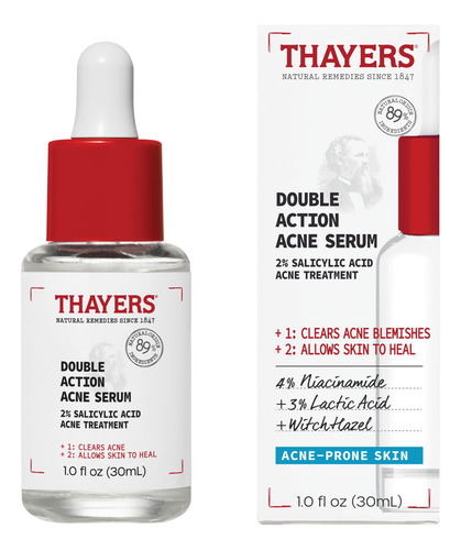 Sérum de dupla ação para acne Thayers com ácido salicílico, sérum facial para tratamento da acne com 2% de ácido salicílico e niacinamida, cuidados com a pele calmantes e não descascantes, 1 onça — Sérum para tratamento da acne: um sérum para limpar a acne que endurece a acne sem ressecar a pele? Nós fizemos isso! O sérum para acne de dupla ação da Thayers é a potência máxima para eliminar a acne, desbotar as marcas após a acne e curar a pele. Testado clinicamente para eliminar a acne em 1 semana: nosso sérum de ácido salicílico apresenta uma força máxima de 2% de ácido salicílico para penetrar nos poros. Testado clinicamente para limpar a acne e suavizar a textura da pele em 1 semana, ajudar a atenuar as marcas pós-acne e melhorar a hidratação em 15 minutos – Ativos de limpeza e cura: nosso tratamento para acne facial apresenta poderosos ativos de limpeza, incluindo 4% de niacinamida + 3% de ácido lático fundido com ativos curativos, incluindo ácido azelaico, ácido hialurônico, hamamélis, capim-limão e babosa – Fórmula sedosa e leve O sérum facial de absorção rápida mantém a barreira de hidratação da pele e proporciona uma sensação calmante e calmante sem descascar a pele. Sérum não comedogênico e sem fragrâncias, álcool e parabenos para rosto – Cuidados com a pele testados por dermatologistas: por gerações, Thayers tem sido a escolha certa em armários de remédios. Os produtos para cuidados com a pele facial da Thayers são dermatologicamente testados quanto à segurança e apoiados pela ciência para nivelar sua pele e obter resultados reais.
