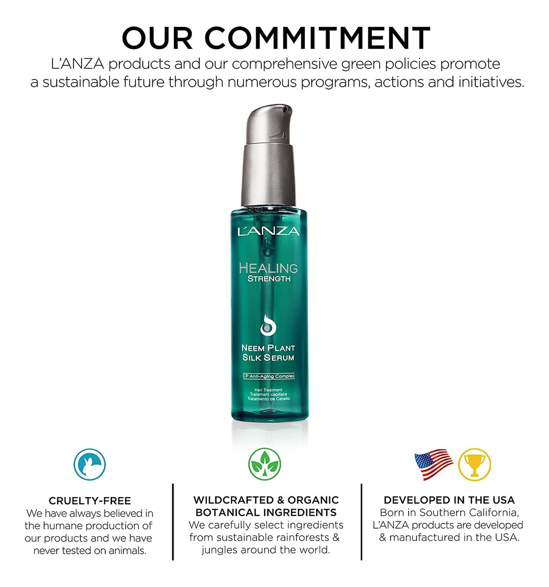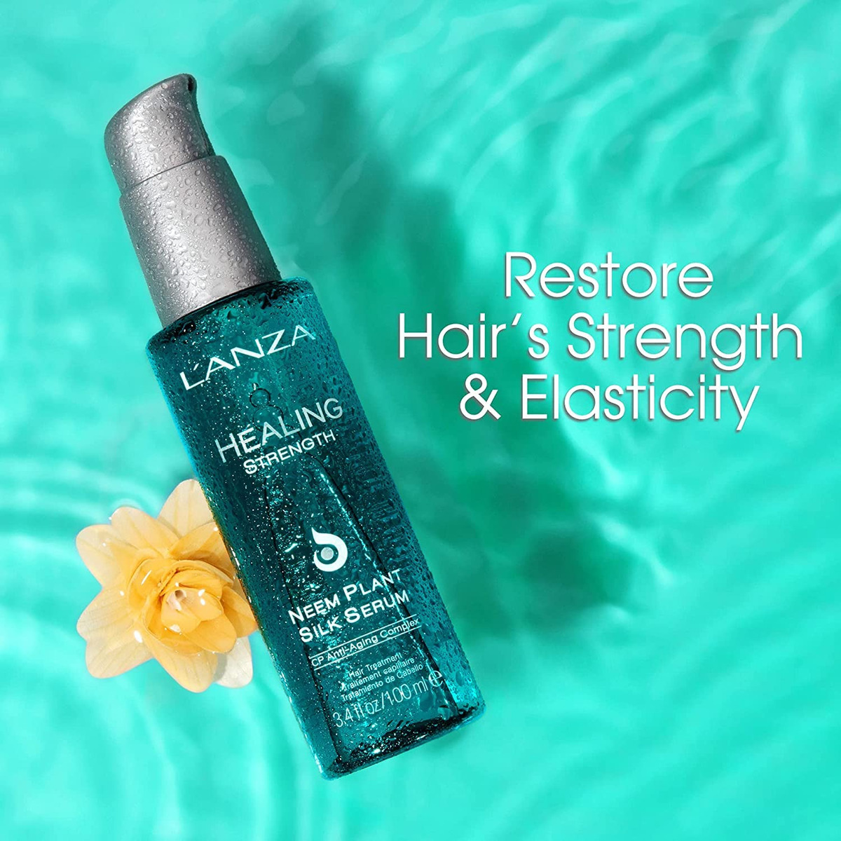 Sérum L'ANZA Healing Strength Neem Plant Silk, óleo de nim para cabelos, tratamento antifrizz para cabelos danificados, nutre e melhora o brilho e a reparação do cabelo com óleo capilar para cabelos crespos (3,4 fl oz) — Natural — Sem parabenos — Sem sulfato