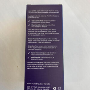 Ilumine sua pele com o Bushbalm After Dark Brightening Gel, especialmente formulado para melhorar a aparência de áreas íntimas como axilas, linha do biquíni, região púbica e parte interna das coxas. Nossa potente mistura de ácido tranexâmico, niacinamida e suco de aloe vera funciona durante a noite para diminuir a aparência de manchas escuras e aumentar o brilho da pele. Acorde com uma pele mais suave e brilhante que se sente revigorada e rejuvenescida. Fácil de usar, basta aplicar uma camada fina na pele limpa e seca antes de dormir e massagear suavemente até que seja absorvida. Experimente os efeitos calmantes, iluminadores e rejuvenescedores deste poderoso gel, feito com cuidado no Canadá e sem adição de álcool e fragrâncias. – Iluminador noturno: transforme sua pele enquanto dorme com nosso gel clareador após o anoitecer da Bushbalm. Reduz a aparência de manchas escuras e melhora o brilho natural da pele. Acorde com uma pele visivelmente mais clara, suave e rejuvenescida. – Ingredientes poderosos e calmantes: nossa fórmula exclusiva inclui 3% de ácido tranexâmico (TXA) para melhorar a aparência das manchas escuras e 2% de niacinamida para melhorar a textura e o tom da pele enquanto acalma e fortalece a barreira cutânea. Enriquecido com suco de aloe vera para melhorar a textura da pele, fortalecer as barreiras protetoras e reduzir a aparência de vermelhidão, deixando a pele suavizada e revigorada. – Aplicação versátil: projetada especificamente para uso em áreas íntimas como axilas, linha do biquíni, região pubiana e parte interna das coxas. Nosso gel clareador garante que essas áreas delicadas recebam os cuidados de que precisam. Desfrute de uma pele mais brilhante, suave e uniforme em todos os lugares que você mais deseja. – Como usar: basta aplicar uma camada fina na pele limpa e seca e massagear suavemente até que seja absorvida. Para obter melhores resultados, emparelhe com o Radiant Reset (vendido separadamente). A consistência é fundamental para desfrutar da transformação da sua pele. Cuidado: Somente para uso externo. Teste os alérgenos antes do primeiro uso. Se usar o produto durante o dia, use protetor solar na pele exposta. – Beleza limpa e ética: fabricado no Canadá, seu cuidado ético com a pele é essencial, livre de substâncias químicas ou toxinas nocivas. Nosso gel clareador é orgulhosamente vegano, livre de crueldade e é feito sem adição de álcool ou fragrância. Ele fornece uma solução segura e eficaz para uma pele mais brilhante e radiante.