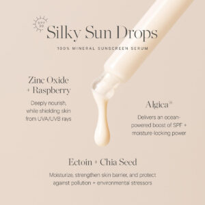 Experimente o máximo em proteção solar e luxo em cuidados com a pele com o sérum protetor solar mineral KORA Organics Silky Sun Drops. Elaborado com ingredientes orgânicos certificados e poderosos antioxidantes, este inovador sérum SPF 30 não apenas protege a pele dos nocivos raios UV, mas também nutre e hidrata uma tez radiante. Sua textura leve e sedosa desliza sem esforço, sem deixar resíduos gordurosos e é a última etapa perfeita em sua rotina de cuidados com a pele. Abrace a confiança ensolarada com a KORA Organics. – KORA Organics Silky Sun Drops SPF 30. Um sérum protetor solar orgânico certificado e com vários benefícios, infundido com extratos botânicos ricos em antioxidantes para nutrir e proteger sua pele. Este protetor solar facial é essencial para o verão e vem embalado em um tamanho adequado para viagens para uso em qualquer lugar. – SPF que adora a pele. Nossa fórmula 100% mineral de amplo espectro usa óxido de zinco não nano e óleo de semente de framboesa seguros para recifes para ajudar a proteger sua pele dos raios UVA/UVB e da luz azul, evitando sinais visíveis de envelhecimento. – Fórmula que aumenta os antioxidantes. A ectoína e o óleo de semente de chia fortalecem a barreira cutânea, protegendo a pele da poluição e da luz azul, enquanto a algica oferece um impulso nutritivo de hidratação. – Camadas leves. Agite bem para misturar e aplique uniformemente no rosto, pescoço e pinça como última etapa da rotina de cuidados com a pele e pelo menos 15 minutos antes da exposição ao sol. A pele fica perfeitamente preparada e visivelmente suavizada, reduzindo a vermelhidão sem um tom branco. – Reaplique a cada 2 horas. Este sérum protetor solar pode ser reaplicado sobre a maquiagem usando sua esponja de beleza favorita, aumentando seu brilho e sua proteção ao longo do dia.