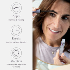 Melhore a aparência de suas sobrancelhas com nosso sérum amplificador de sobrancelhas, o único produto que fortalece a capacidade do corpo de ancorar o “bulbo” do folículo piloso ao sistema radicular de elastina, proporcionando sobrancelhas mais grossas e cheias. Em uma avaliação clínica de 12 semanas, os participantes viram um aumento de até 200% na largura da sobrancelha e um aumento de até 97% na melhora visível do cabelo. Os resultados variam dependendo do sexo, idade, predisposição genética, condições ambientais e muito mais. Pode ser aplicado sob maquiagem com pouco ou nenhum tempo de espera. A NULASTIN tem a missão de transformar vidas com o poder inovador da reposição de elastina. Nossa tecnologia Elastaplex, de origem ética, é patenteada e comprovada para revitalizar cílios, sobrancelhas, cabelos e pele. A rotina simples leva minutos por dia e oferece resultados naturais, bonitos e contínuos. Nossos produtos são orgulhosamente 100% livres de crueldade, veganos, sem glúten, sem parabenos, recicláveis, certificados pelo FSC, de propriedade de mulheres e fabricados nos EUA. – NOVO LANÇAMENTO. Nós ouvimos você e agimos. Nosso tubo transparente de edição limitada foi redesenhado para aprimorar sua experiência com o BROW. Melhor saturação do pincel, claramente preenchido e apoiado por uma garantia de desempenho para sobrancelhas visivelmente mais grossas. – SÉRUM RENOVADOR DE SOBRANCELHAS. Este condicionador restaurador para sobrancelhas ajuda a reduzir a queda e a perda de cabelo, ao mesmo tempo que apoia a capacidade do corpo de fixar o folículo da sobrancelha no sistema radicular, rejuvenescendo a elastina e promovendo sobrancelhas mais fortes, bem torneadas e cheias. – COMO USAR. Bombeie o aplicador e pincele nas sobrancelhas limpas e secas e na pele onde os resultados são desejados. Aplique duas vezes ao dia, reduzindo para uma vez ao dia quando atingir a aparência. Dica: use um movimento para frente e para trás ou enrole as cerdas durante a aplicação para obter mais cobertura. – COMPROVADO CIENTIFICAMENTE. Nossos resultados foram comprovados clinicamente em vários ensaios científicos. Em um estudo clínico cego de 12 semanas, os participantes experimentaram um aumento de até 60% na aparência da densidade e espessura da sobrancelha. – DERIVADO NATURALMENTE. Este sérum para melhorar as sobrancelhas é formulado com uma fórmula inovadora que apresenta avanços em biotecnologia, biodiversidade e recursos de design ecológico. 5 ingredientes ativos e sinérgicos ajudam a atingir todas as fases do ciclo de crescimento capilar.