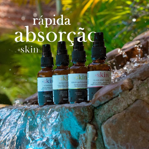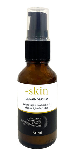 Modo de uso: Aplique algumas gotas do Repair Sérum +skin no rosto limpo, e espalhe suavemente até a absorção completa do produto.