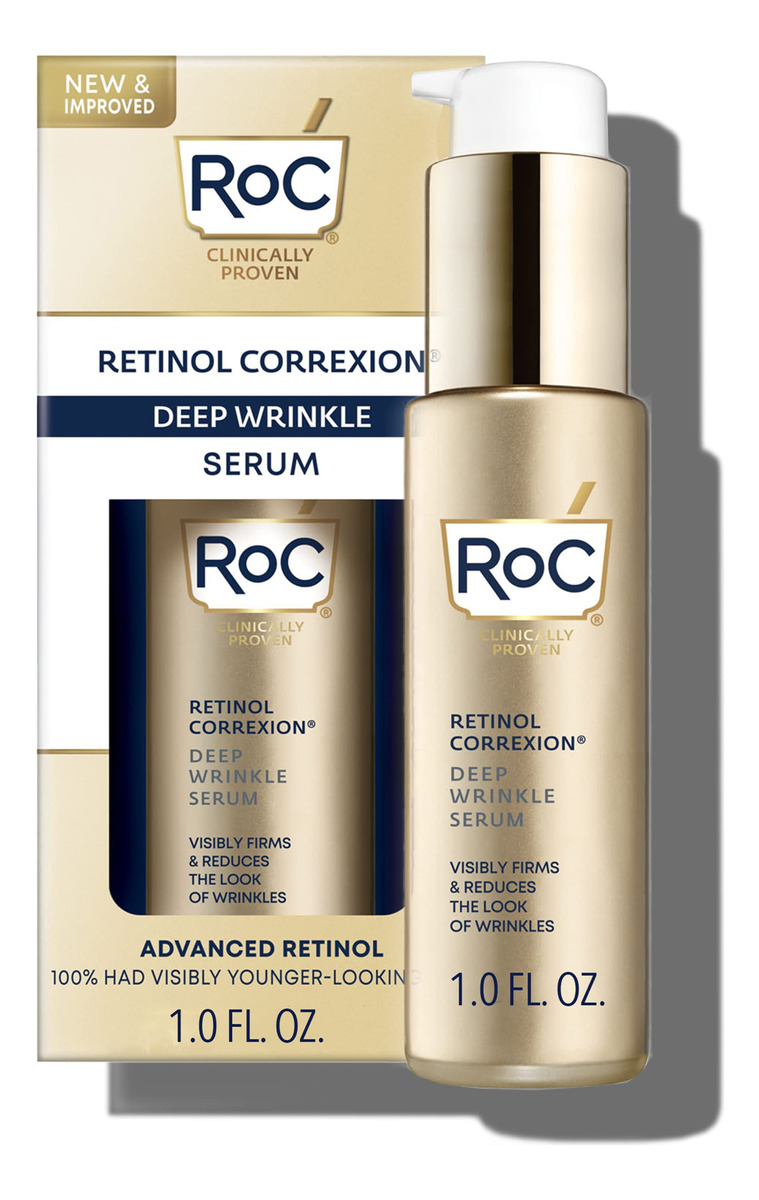 Sérum facial RoC Retinol Correxion Deep Wrinkle Retinol com ácido ascórbico, tratamento diário antienvelhecimento para linhas finas, manchas escuras e cicatrizes de acne, 1 onça (a embalagem pode variar) — Tratamento de sérum antirrugas: reduz visivelmente os sinais de envelhecimento da pele. Esta fórmula potente com antioxidantes alimentados por Roc Retinol é clinicamente comprovada para proporcionar uma pele mais lisa, firme e radiante e ajudar a reduzir a aparência de rugas profundas. Suave o suficiente para uso diário por homens e mulheres. – RESULTADOS COMPROVADOS: Com o uso diário, está clinicamente comprovado que este sérum ajuda a proporcionar uma pele mais lisa e radiante em 4 semanas e a diminuir a aparência de fotodanos em 8 semanas. As rugas profundas parecem visivelmente reduzidas. Não gorduroso. Não comedogênico. Testado por dermatologistas. – FÓRMULAS ANTIENVELHECIMENTO: Se você está procurando uma solução para rugas profundas, linhas finas, olheiras, pés de galinha, tom de pele irregular ou pele seca, temos a fórmula antienvelhecimento ideal para você. – CIÊNCIA E BELEZA: Produzimos uma ampla variedade de produtos e tratamentos para a pele, incluindo hidratantes diários com SPF, ácidos hialurônico e niacinamida, limpadores faciais, séruns de vitamina C, regimes de retinol para tonalidades de pele e rugas e cremes para embaixo dos olhos, firmeza do pescoço, decote e muito mais. – INOVAÇÃO EM CUIDADOS COM A PELE: Nossos produtos são reconhecidos por líderes do setor de beleza e dermatologistas por sua melhor eficácia. Continuamos pesquisando e inovando novas fórmulas para uma pele mais saudável.