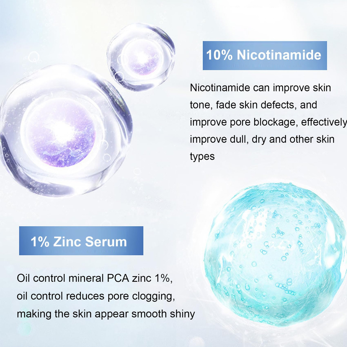 Sérum de niacinamida para rosto O soro de niacinamida pode melhorar a aparência de poros dilatados, reduzir a linha fina, hidratar a pele seca, melhorar a barreira cutânea, ajudar a reduzir efetivamente o excesso de óleo, manchas. Sérum hidratante para rosto. O soro de niacinamida pode ser rapidamente absorvido pela pele, penetrar profundamente na pele, tornar a pele cheia e macia, hidratação profunda, o uso a longo prazo pode torná-la Sérum antienvelhecimento suave e elástico para mulheres O soro facial de niacinamida pode promover a síntese protéica, mas também melhorar a capacidade metabólica da pele, regular o equilíbrio de água e óleo metaboliza as células envelhecidas, até certo ponto, reduz as rugas faciais, a pele ficará mais cheia e firme. Adequado para todos os tipos de pele. O soro de niacinamida é suave para rosto, pele oleosa e pele sensível tem um efeito melhor, melhora o equilíbrio de água e óleo da pele. O pacote inclui: 1* soro de niacinamida – [soro de niacinamida]: soro de niacinamida para rosto é um sérum versátil para o cuidado da pele que pode diminuir os poros, reduzir as rugas, hidratar a pele seca, reduzir o embotamento da pele, melhorar a barreira cutânea, ajudar a reduzir eficazmente o excesso de oleosidade e manchas – [ Sérum hidratante]: Este soro de niacinamida tem uma textura leve, pode ser rapidamente absorvido pela pele, penetrar profundamente na pele, tornar a pele cheia e macia, hidratação profunda, uso a longo prazo pode torná-la suave e elástica – [Sérum antienvelhecimento]: o soro facial de niacinamida pode promover a síntese de proteínas, mas também melhorar a capacidade metabólica da pele, regular o equilíbrio de água e óleo e metabolizar o envelhecimento as células, em certa medida, reduzem as rugas faciais, a pele fica mais cheia e firme – [Oil Control Serum]: Nossos séruns para a pele equilibram a oleosidade produção na pele e controle a quantidade de sebo produzida pelas glândulas sebáceas, estreitando os poros e reduzindo a acne. O uso prolongado pode melhorar o equilíbrio de água e óleo da pele – [Fórmula suave]: sérum facial hidratante para qualquer tipo de pele, essa niacinamida fresca não obstrui os poros, o soro de niacinamida para rosto, pele seca, pele oleosa ou pele sensível tem um efeito muito bom.