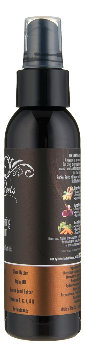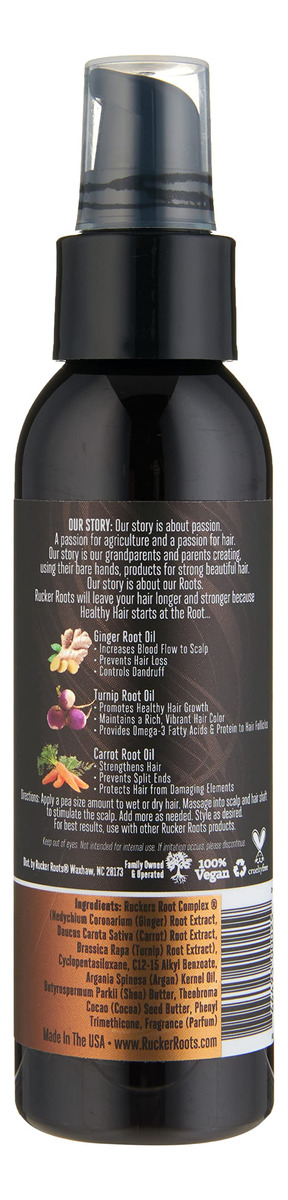Sérum de crescimento sedoso Rucker Roots | Óleos de gengibre, nabo e raiz de cenoura | Promove o crescimento – INFUNDIDO COM VITAMINAS E NUTRIENTES | Manteiga de karité, óleo de argan, manteiga de semente de cacau, vitaminas A, C, K e B, antioxidantes – SOLUÇÕES DE CRESCIMENTO CAPILAR | Sela o folículo piloso para um cabelo mais macio, cheio e gerenciável – ESTIMULADOR DE COURO CABELUDO | Aumenta o fluxo sanguíneo no couro cabeludo e fortalece o cabelo ejacula e protege contra pontas duplas – ÓLEOS DE RAIZ DE NABO | Ajuda a manter uma cor de cabelo rica e vibrante. Contém vitaminas A e C, essenciais para o crescimento do cabelo. – 100% VEGANO E LIVRE DE CRUELDADE | ausência de subprodutos de origem animal nos ingredientes, bem como produtos que NÃO foram testados em animais