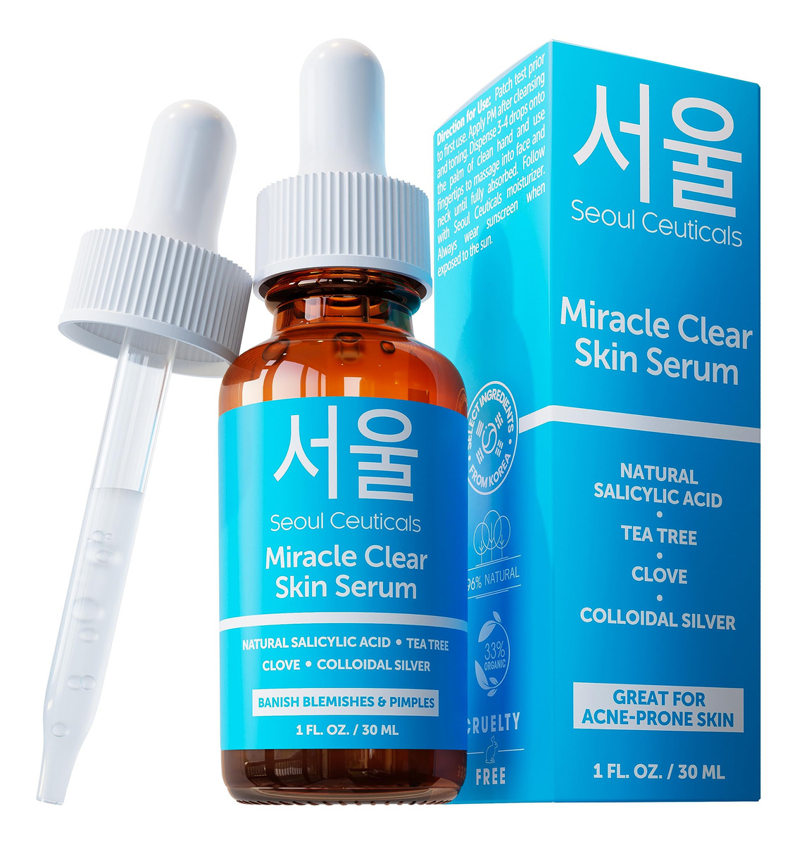 O soro coreano de ação rápida Seoul Ceuticals para peles com tendência a acne é uma mistura poderosa de ácido salicílico natural, melaleuca, extrato de cravo e prata coloidal. Este sérum eficaz foi desenvolvido para tratar a acne em sua raiz, proporcionando uma pele clara e radiante. Características principais: Ácido salicílico natural: extraído da casca do salgueiro, nosso ácido salicílico penetra profundamente nos poros, esfoliando as células mortas da pele e reduzindo a produção de sebo. O resultado? Menos fugas e menor visibilidade dos poros. Óleo de melaleuca: conhecido por suas poderosas propriedades anti-acne e anti-manchas, o óleo de melaleuca é um guerreiro natural em sua luta para manter uma pele clara e sem manchas. Extrato de cravo: O cravo é um novato na luta contra a acne, mas agora está provado que é um ingrediente crucial para ajudar a limpar, acalmar e curar a pele inflamada. Sua presença neste soro auxilia na redução de manchas, vermelhidão e inchaço. Prata coloidal: Este remédio antigo é famoso por sua capacidade de secar as espinhas de dentro para fora e ajudar a combater vários tipos de pele propensa à acne, incluindo os císticos. Benefícios: Ação rápida: testemunhe resultados visíveis em um curto espaço de aplicação. Adequado para todos os tipos de pele: nossa fórmula suave é eficaz e gentil, garantindo que seja adequada até mesmo para tipos de pele sensíveis. Não comedogênico: não obstrui os poros, garantindo que sua pele respire livremente. Ingredientes naturais: elaborado com o melhor da natureza, livre de substâncias químicas nocivas, parabenos e sulfatos. – Este sérum coreano para cuidados com a pele para acne contém ácido salicílico natural, melaleuca, cravo, prata coloidal e centela asiática. Está comprovado que esta combinação de ingredientes potentes limpa a pele propensa a acne, combate espinhas e fornece um tom de pele uniforme – o tratamento coreano de ação rápida ajuda a limpar rapidamente a pele propensa a acne. O produto K Beauty perfeito para incluir em sua rotina diária de cuidados com a pele coreana – O ÚNICO produto para a pele com acne que combina ácido salicílico natural, melaleuca, cravo, prata coloidal e centela asiática. Uma potência extremamente eficaz que seca rapidamente espinhas e espinhas, mas suave o suficiente para todos os tipos de pele – DIGA ADEUS À acne persistente e abrace um futuro de pele confiante, clara e luminosa com nosso sérum de acne K-Beauty. Esta fórmula coreana para cuidados com a pele para acne é 96% natural e 33% orgânica – PROMESSA DA SEOUL CEUTICALS: Todos os nossos produtos coreanos para o cuidado da pele são formulados com ingredientes altamente eficazes e amigáveis à pele que comprovadamente funcionam sem irritar a pele. Sempre livre de crueldade, sem parabenos, sem sulfatos, sem ftalatos