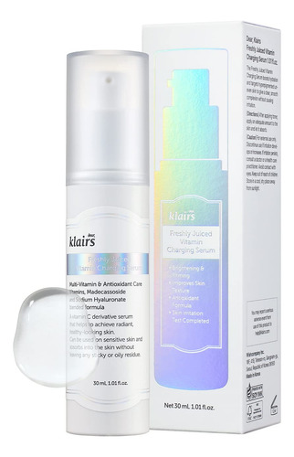 – Teste primário de irritação cutânea – Teste primário de irritação cutânea para pele sensível – Teste in vitro de eficácia antioxidante – COMPLEXO DUPLO PARA PELE RADIANTE: formulado com ácido 3-O-etil ascórbico (10%) e niacinamida para melhorar o tom e a pigmentação da pele, aumentando o brilho. – Repleto de antioxidantes para firmeza: mistura de derivados de vitamina C (EAC), E, B2, B5 aperta a pele, melhorando a elasticidade para uma pele firme e elástica. — TEXTURA EXTRA SEGURA E NÃO OLEOSA: Extra segura até mesmo para a pele mais sensível, a textura leve e não oleosa é rapidamente absorvida sem deixar resíduos. – APRIMORAMENTO E HIDRATAÇÃO PODEROSOS: 10% de derivado de vitamina C e niacinamida fornecem um aprimoramento poderoso, conforme comprovado pelo “Teste Triplo de Tom de Pele”, com melhorias na uniformidade, pigmentação e tom de pele. – NOVO SÉRUM CARREGADOR DE VITAMINAS: Experimente a inovação do sérum carregador de vitaminas recém-espremido, um produto recém-lançado com eficácia excepcional. Apesar de ser uma nova adição, a Klairs tem uma história de 9 anos de sucesso, com 23 prêmios em 9 países e mais de 4 milhões de garrafas vendidas até o momento por seu renomado Freshly Juiced Vitamin Drop. Agora, o legado continua com o Vitamin Charging Serum.
